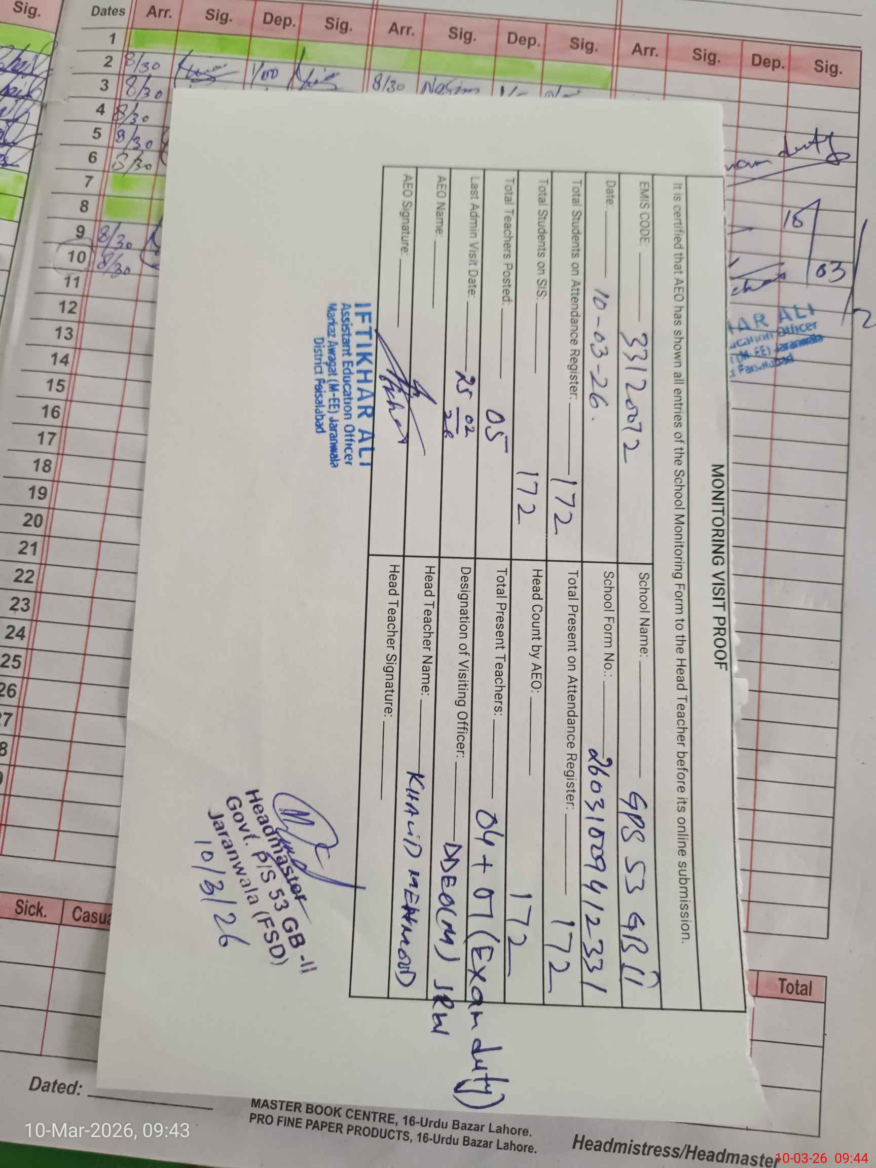 | EMIS Code: 33120072 | Name of School: GPS CHAK 53 GB II | |||