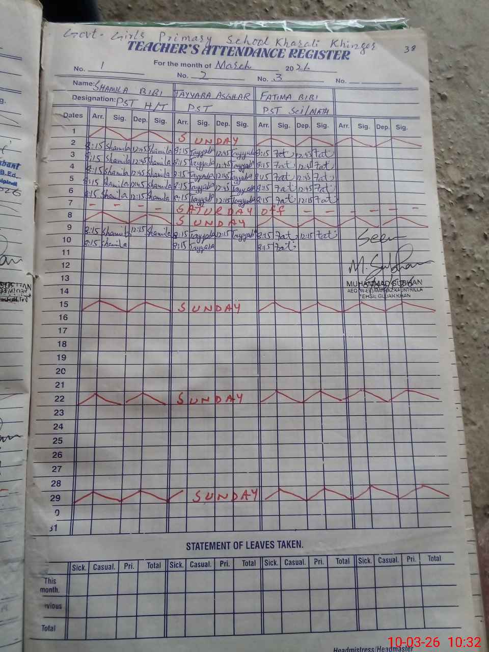 | Name: Sh**** Bi**** Designation: (School Headmaster's/Headmistress's) PST Phone/Cell Number: 03**** |