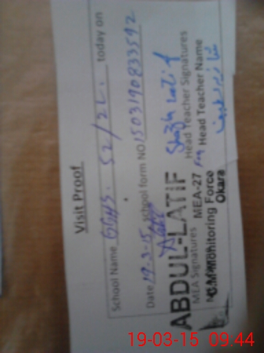 | Attendance Register | Head Teacher | MEA with School | Visit Proof |