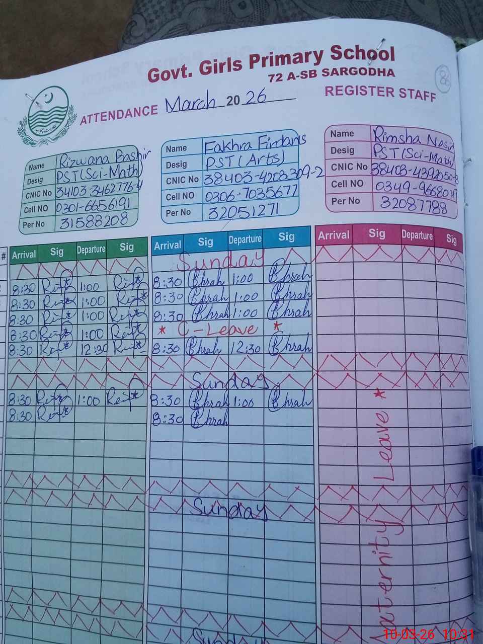 | 38**** | Ri**** Na**** | PST Science/Maths | Regular | 0 | 0 | 0 | 0 | 0 | 0 | 0 | 0 | 0 | Maternity |