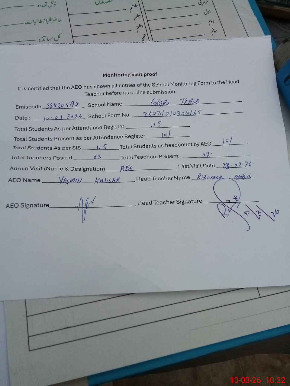 | EMIS Code: 38420597 | Name of School: GGPS CHAK NO.72 A-SB | |||