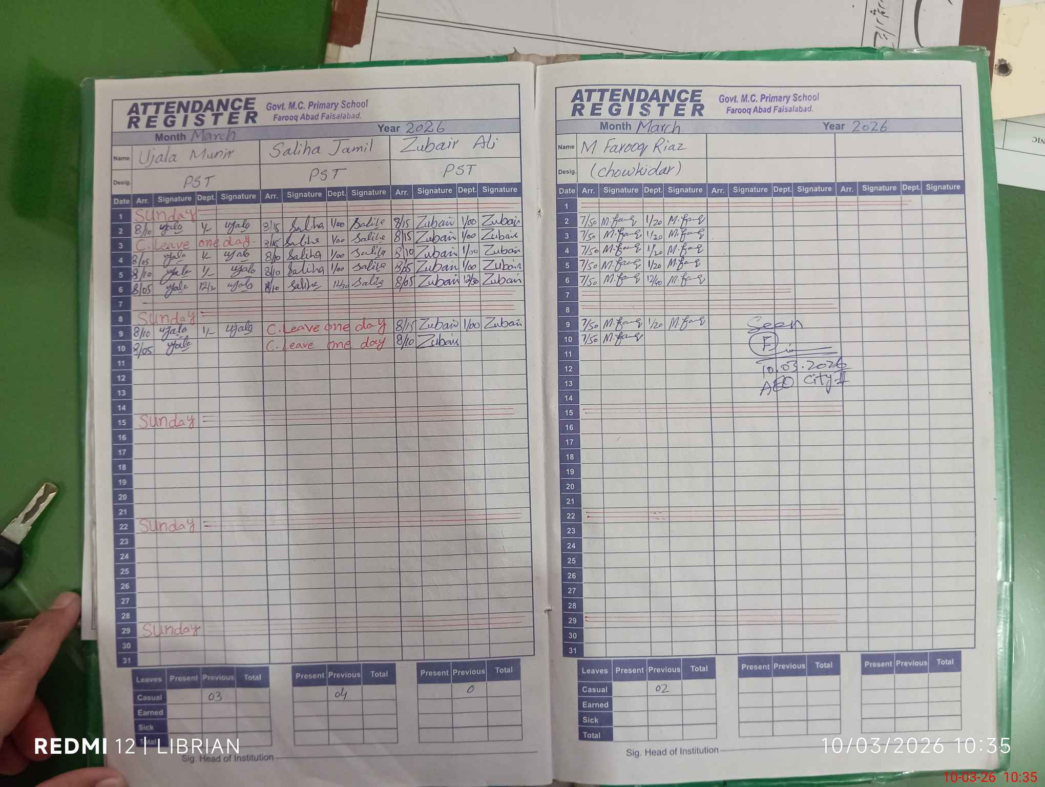 | Leave | Duty | Absent | Maternity | Medical | Ex- Pak |