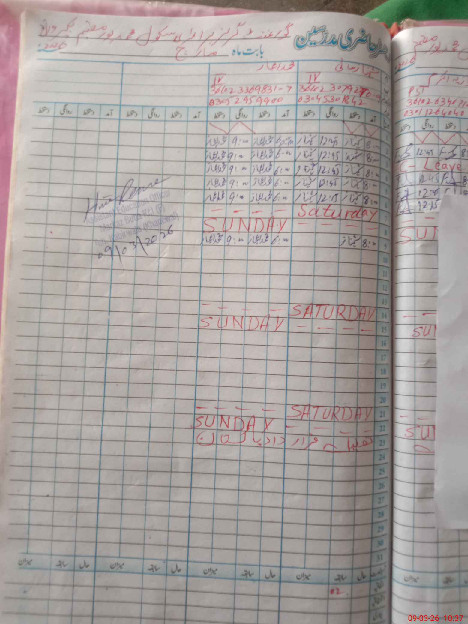 | Name: Na**** Ir**** Designation: (School Headmaster's/Headmistress's) PST Phone/Cell Number: 03**** |