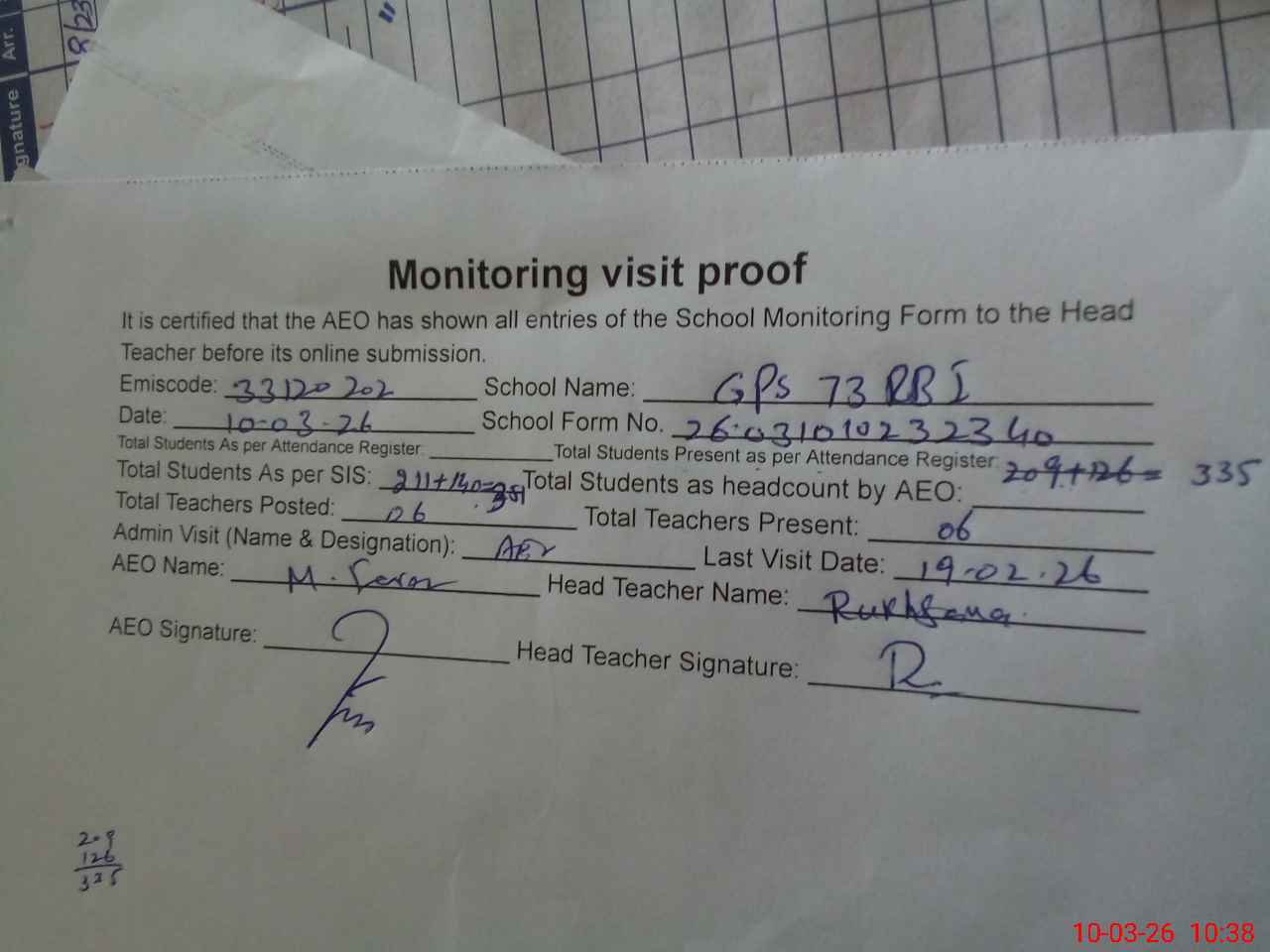 | Name: RU**** JU**** Designation: (School Headmaster's/Headmistress's) PST ( HM ) Phone/Cell Number: 03**** |