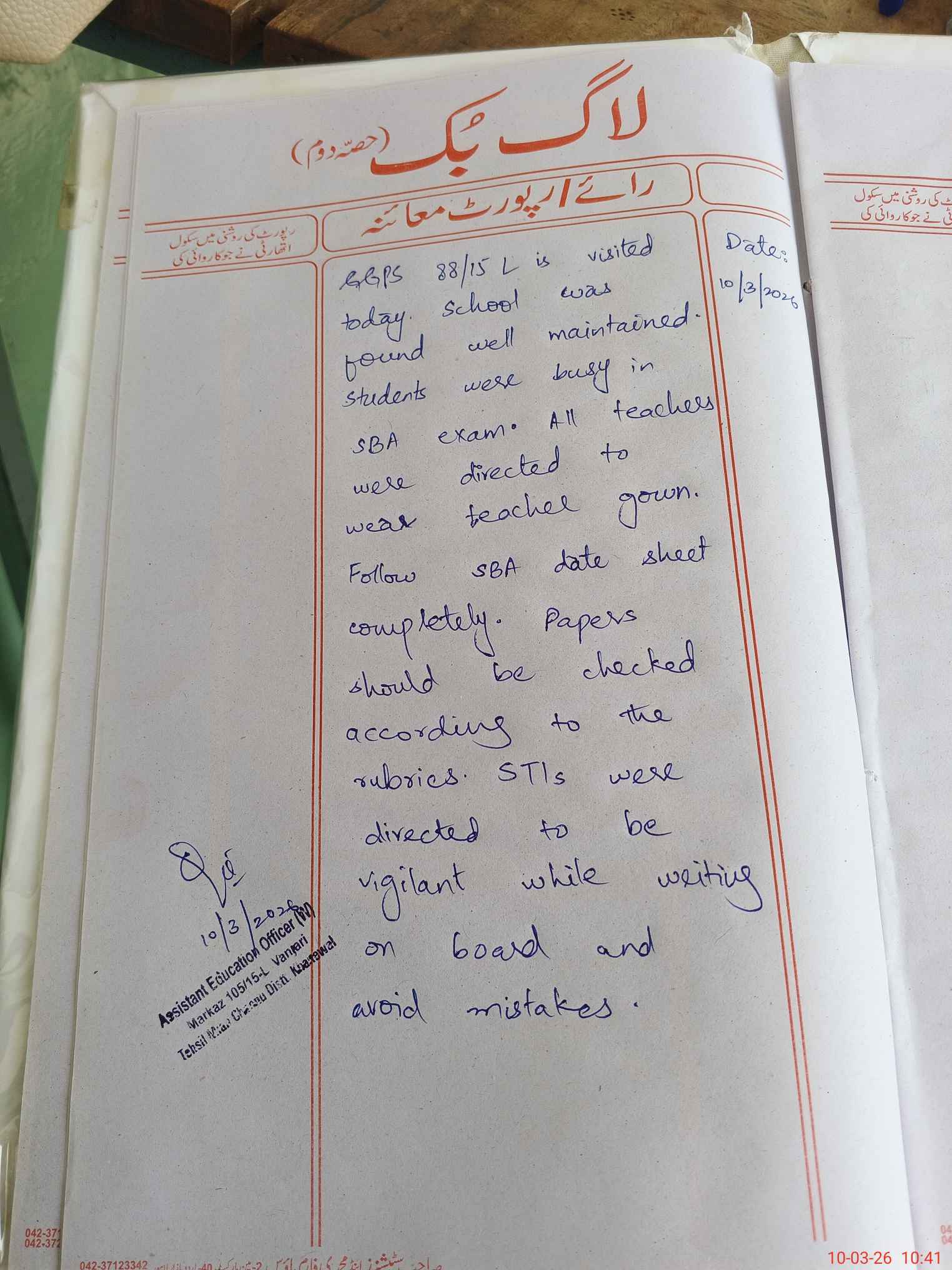 | Certified that this School was Inspected by the Undersigned MEA/DMO Today and the Information Stated Above is as Per Record. | |||||