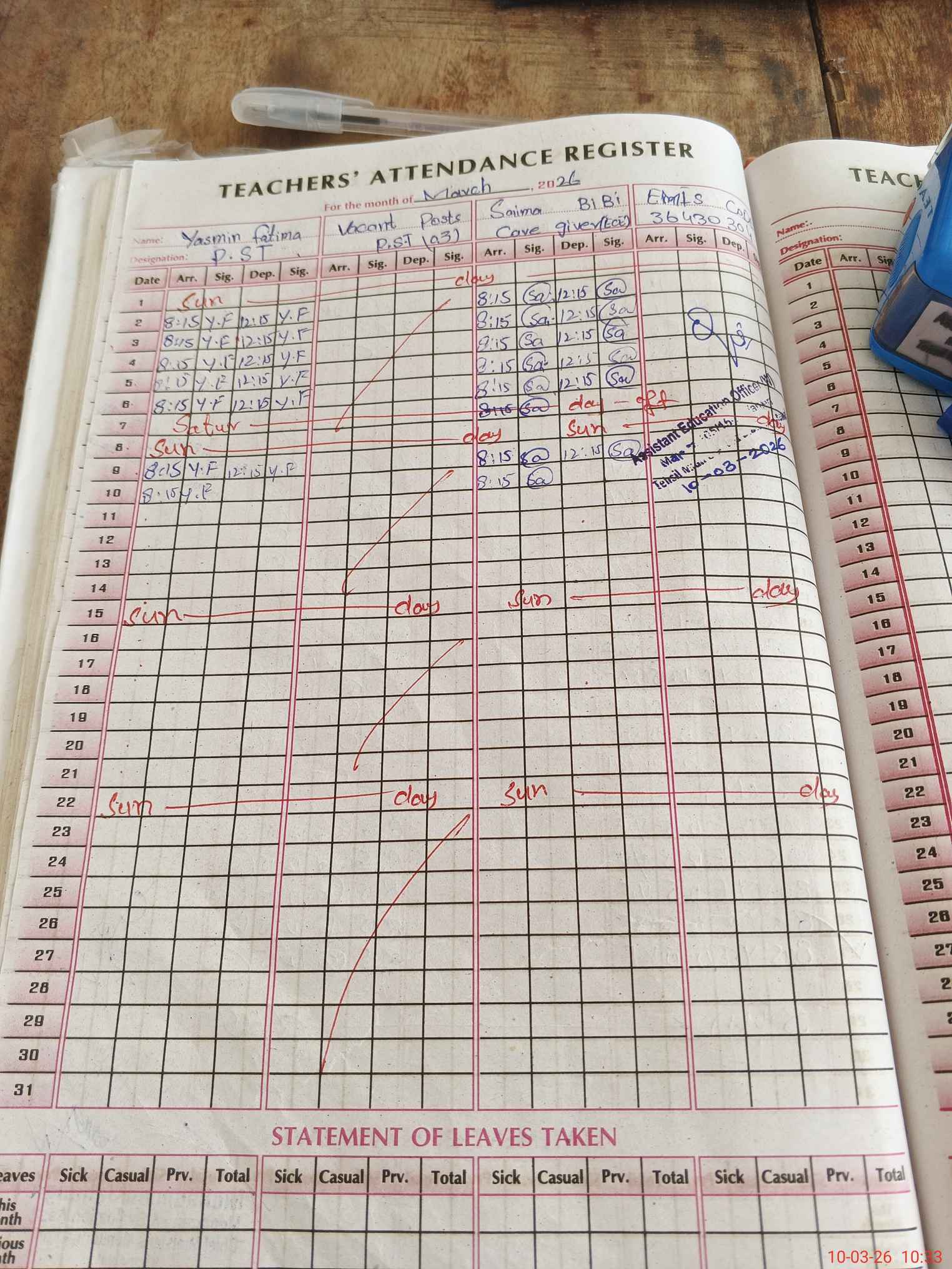 | Name: Ya**** Fa**** Designation: (School Headmaster's/Headmistress's) PST Phone/Cell Number: 03**** |