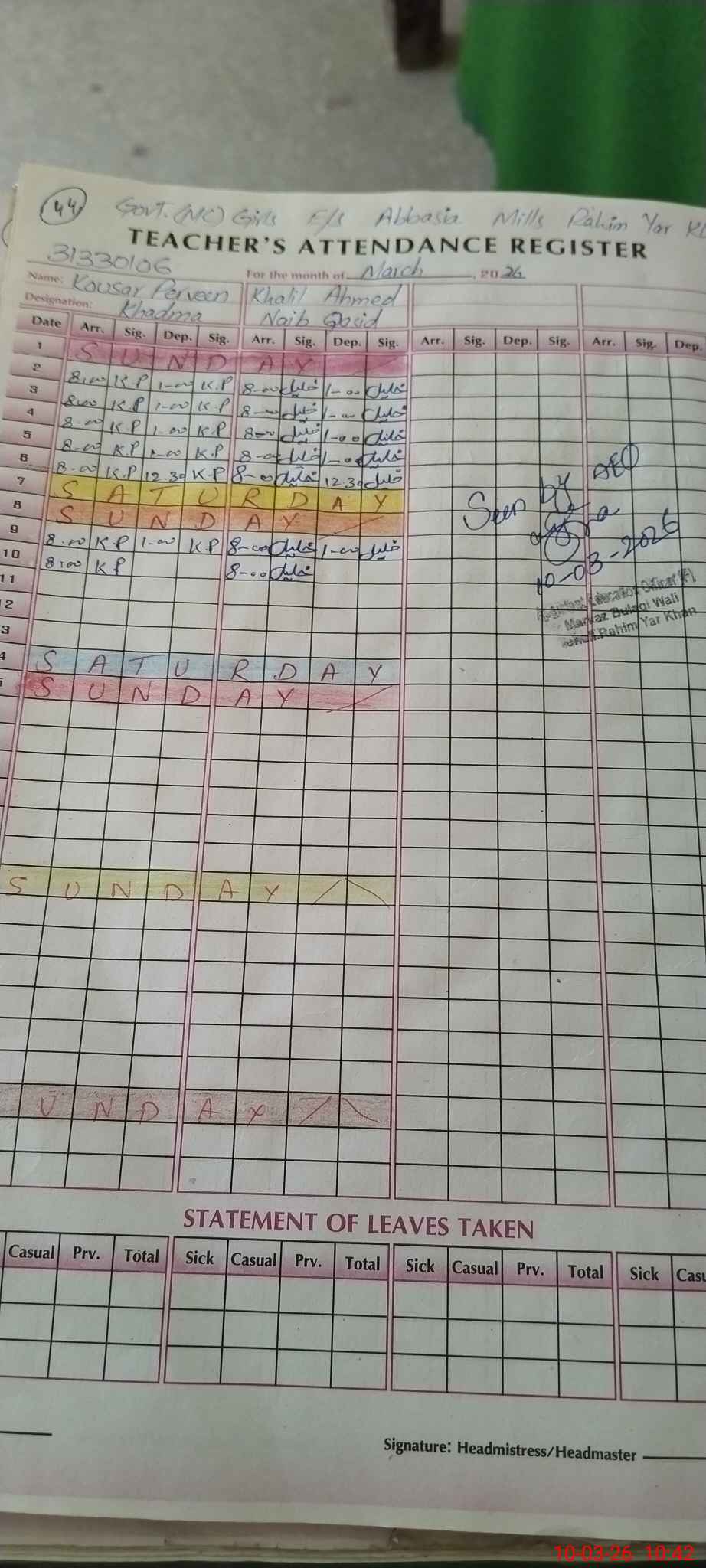 | Name: Sy**** Ta**** Ka**** Designation: (School Headmaster's/Headmistress's) SST Phone/Cell Number: 03**** |