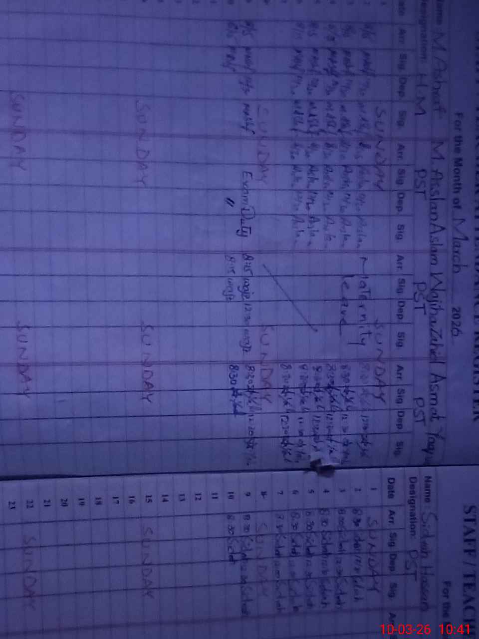 | 33**** | Mu**** Ar**** As**** | PST Science/Maths | Regular | 0 | 0 | 0 | 0 | 0 | 0 | 0 | 0 | 0 | Exam Duty |