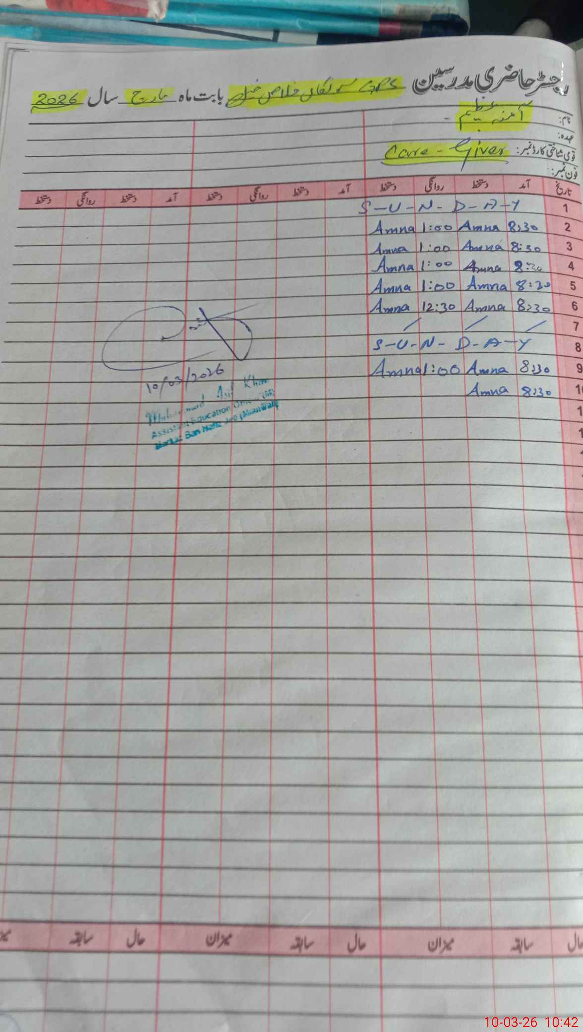 | Name: Ha**** Ul**** Kh**** Designation: (School Headmaster's/Headmistress's) PST Phone/Cell Number: 03**** |