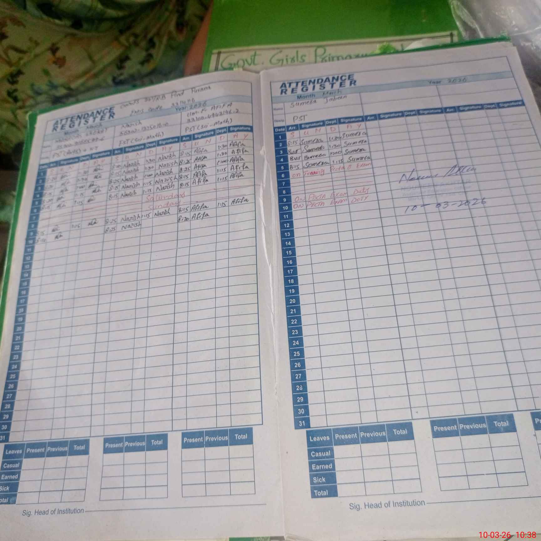 | 33**** | Su**** Ja**** | PST Arts | Regular | 0 | 0 | 0 | 0 | 0 | 0 | 0 | 0 | 0 | Exam Duty |