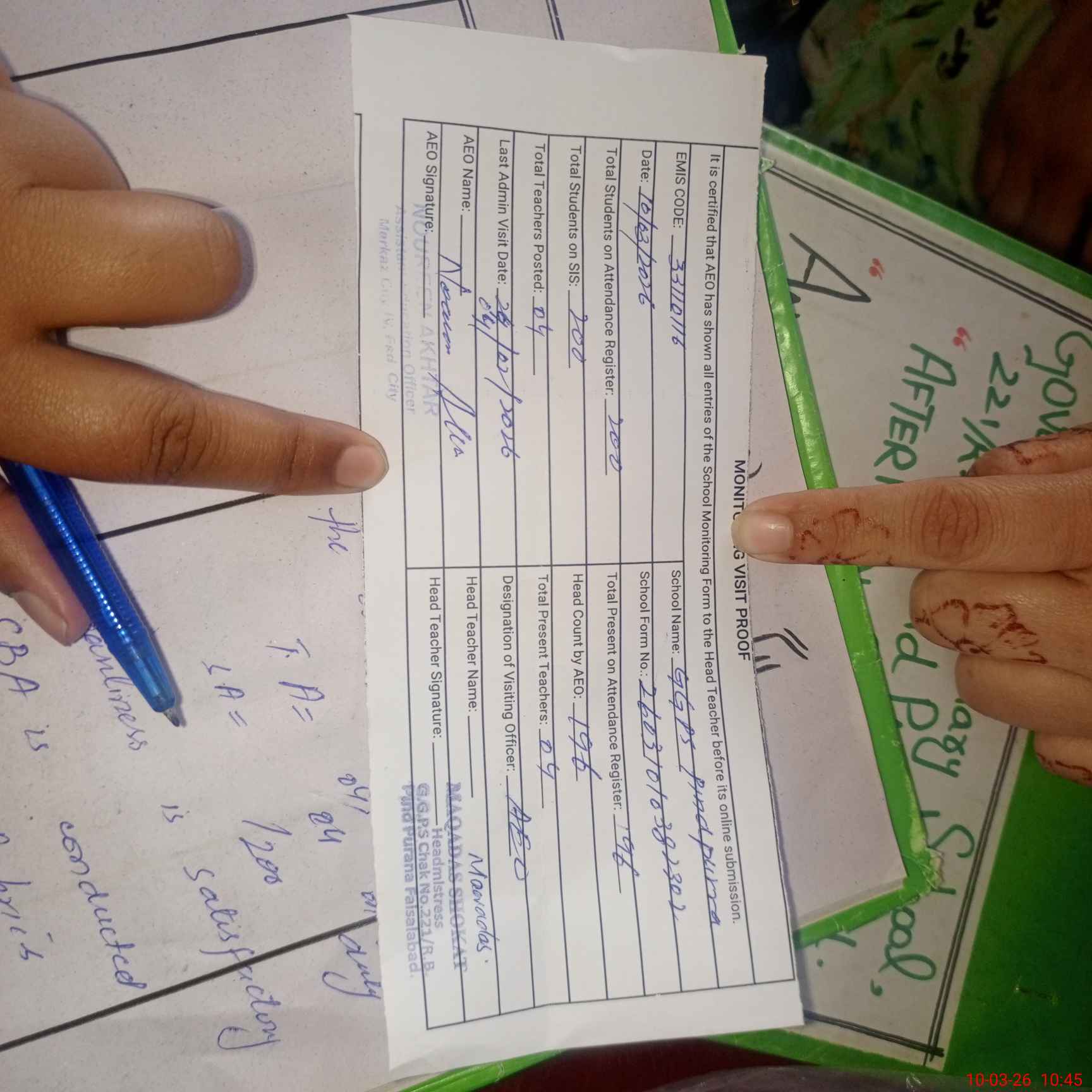 | Name: MU**** SH**** Designation: (School Headmaster's/Headmistress's) PSt Phone/Cell Number: 03**** |