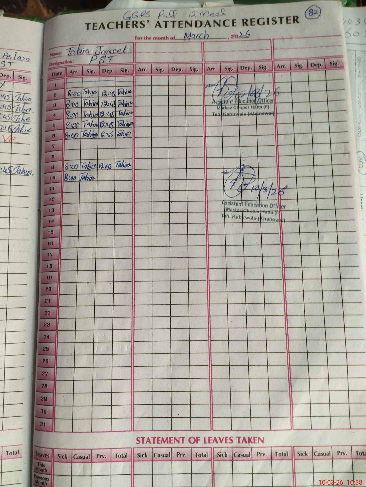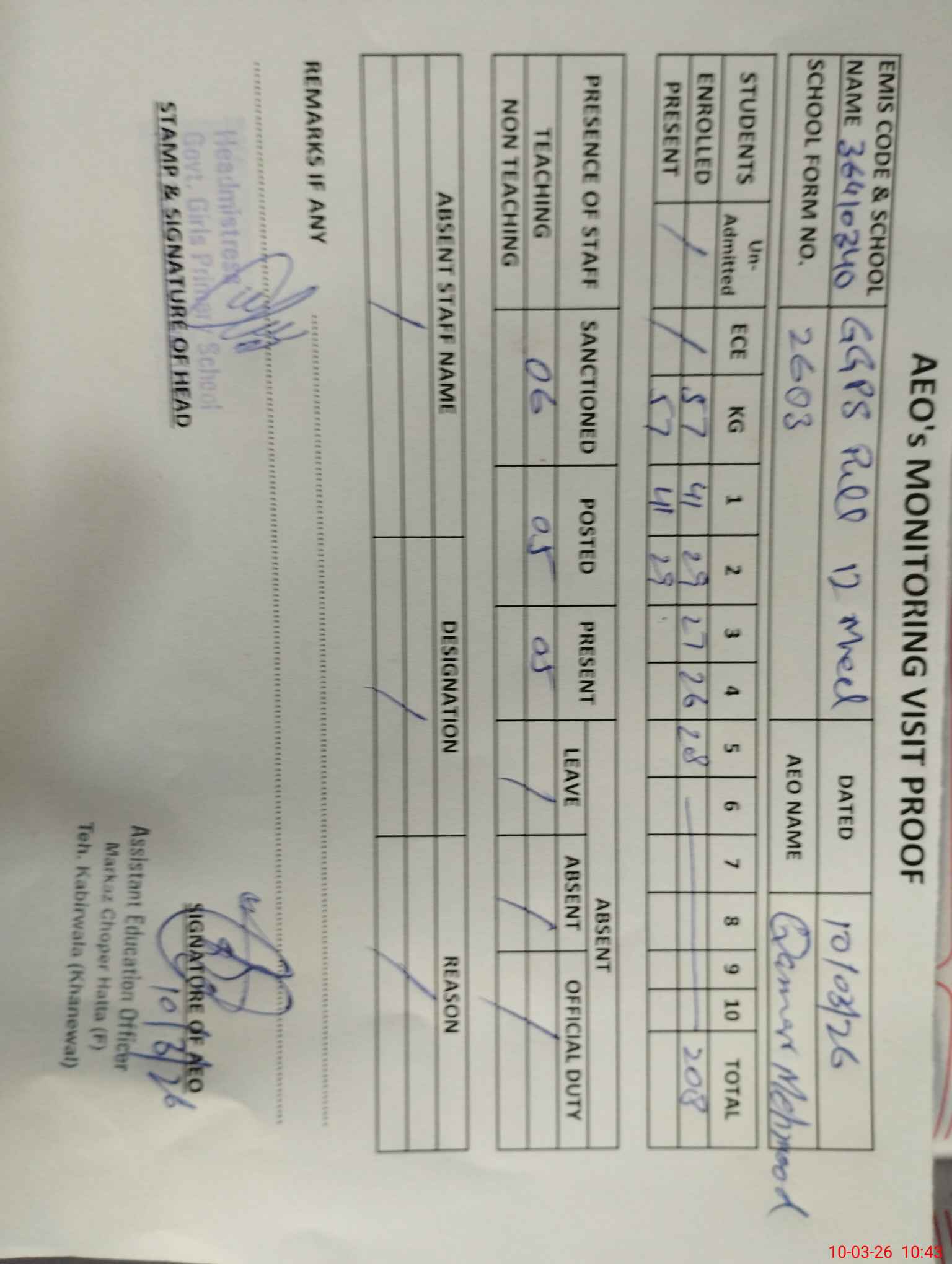 | EMIS Code: 36410340 | Name of School: GGPS PULL 12 MEEL, KABIRWALA | |||