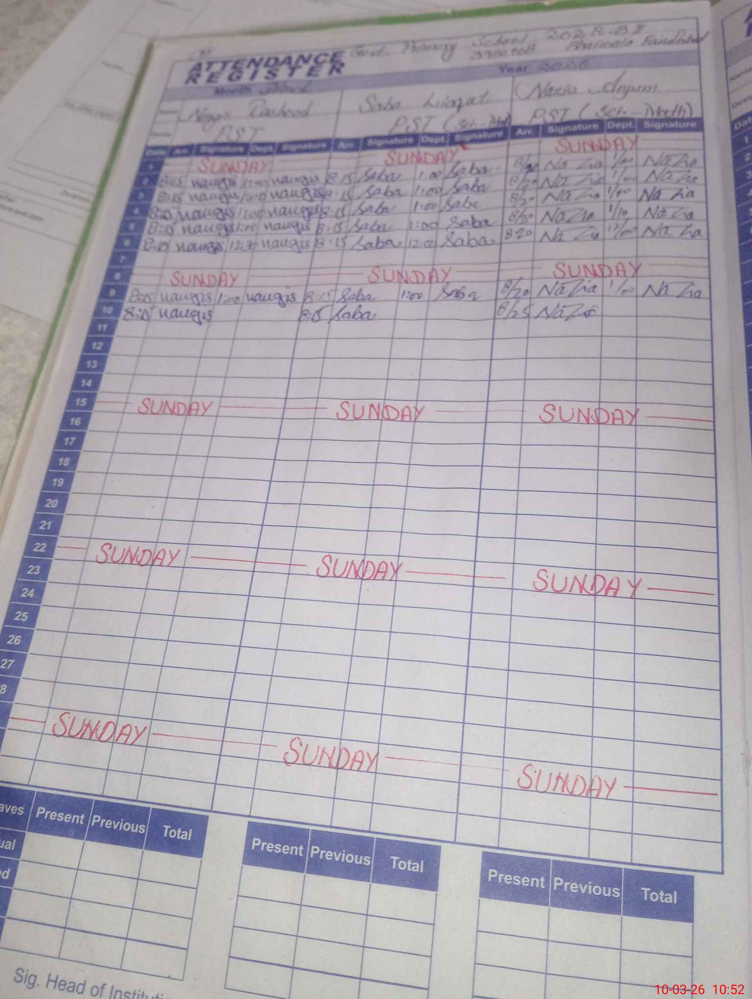 | Leave | Duty | Absent | Maternity | Medical | Ex- Pak |