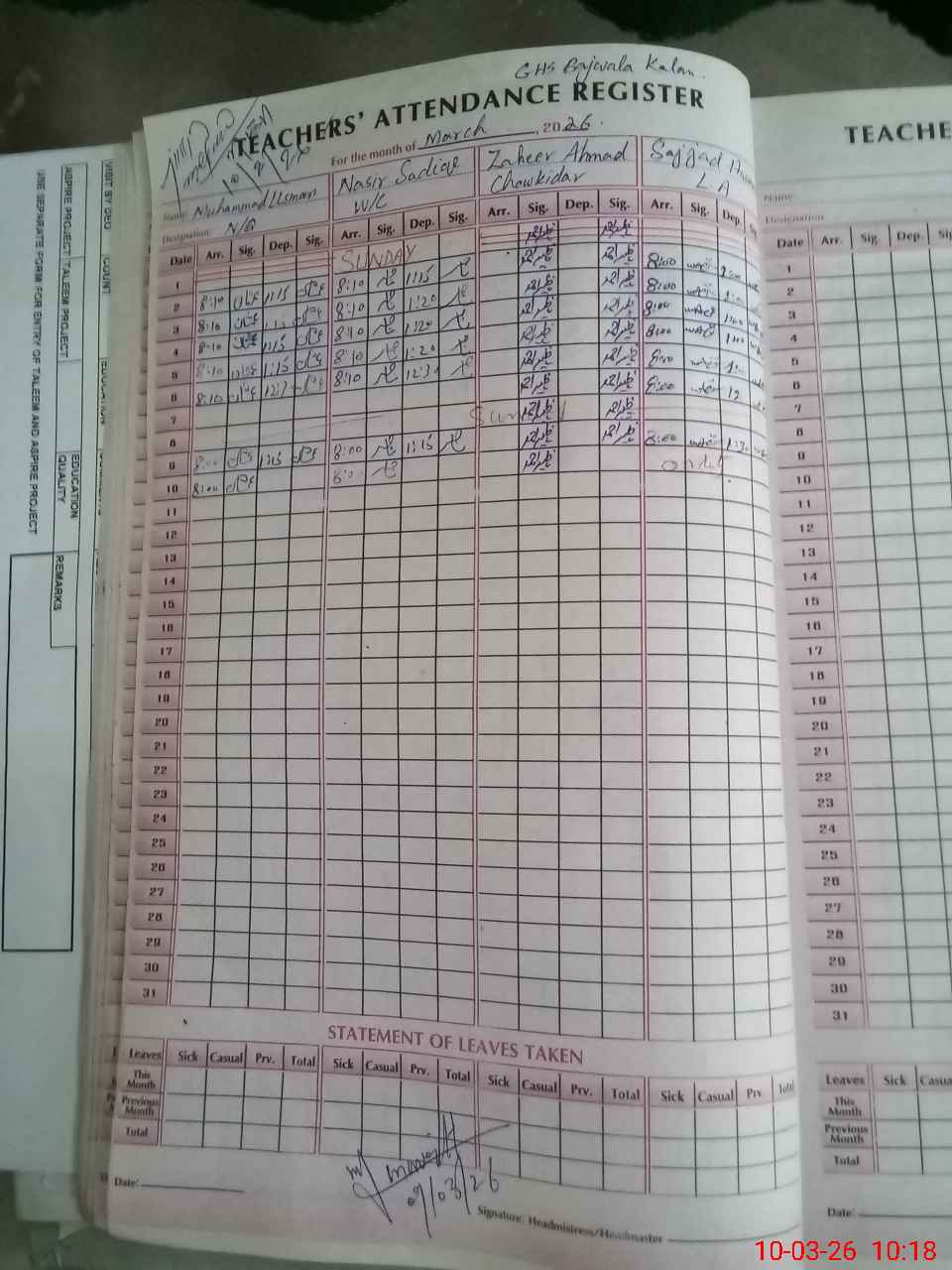| 37**** | Mu**** Ja**** Qa**** | PST Arts | Regular | 0 | 0 | 0 | 0 | 0 | 0 | 0 | 0 | 0 | Exam Duty |