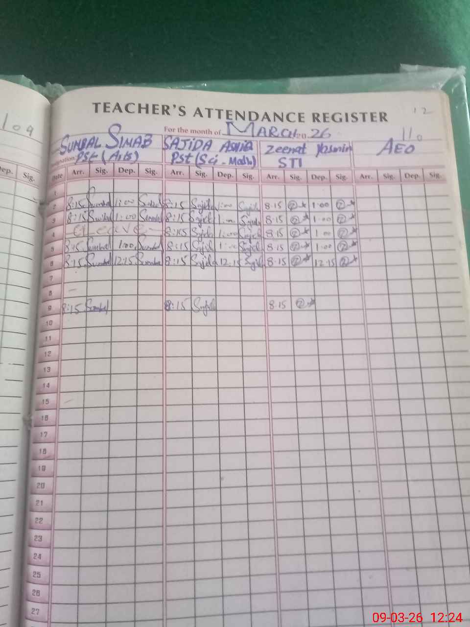 | Monitoring Date: 09-03-2026 | Start Time: 09-03-2026 11:43 AM | End Time: 09-03-2026 12:26 PM | Name of MEA: MU**** AH**** KH**** | |