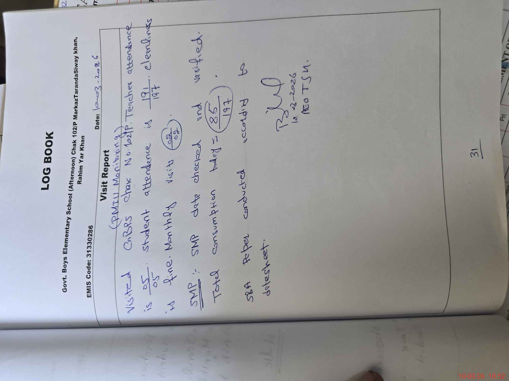 | EMIS Code: 31330286 | Name of School: GPS CHAK 102/P | |||