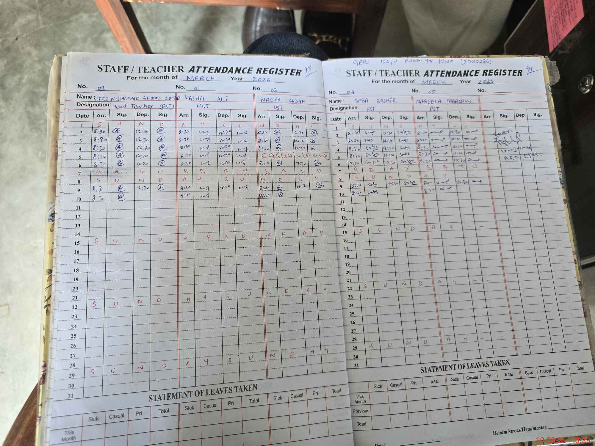 | Leave | Duty | Absent | Maternity | Medical | Ex- Pak |