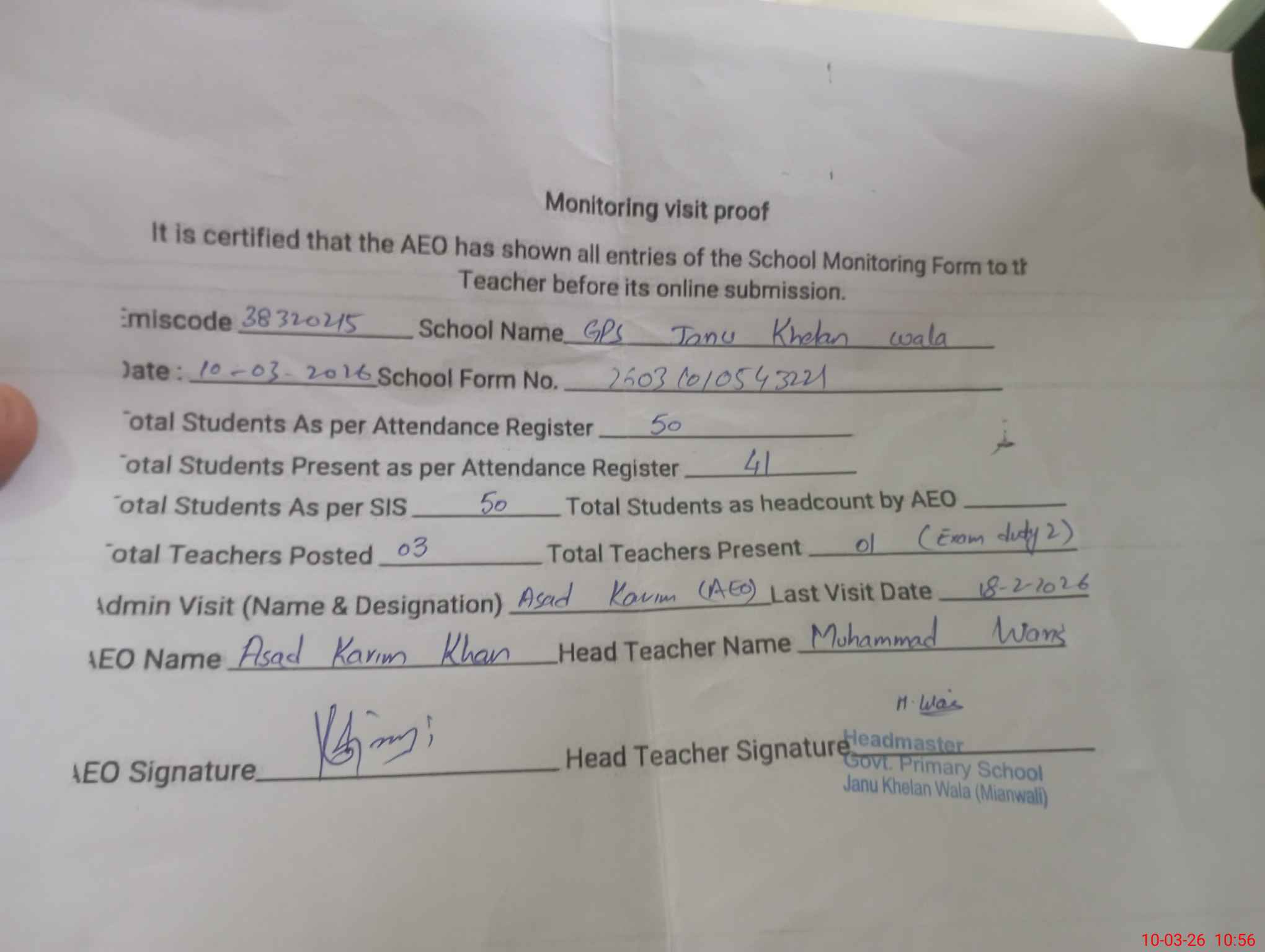 | EMIS Code: 38320215 | Name of School: GPS JANU KHELAN WALA | |||