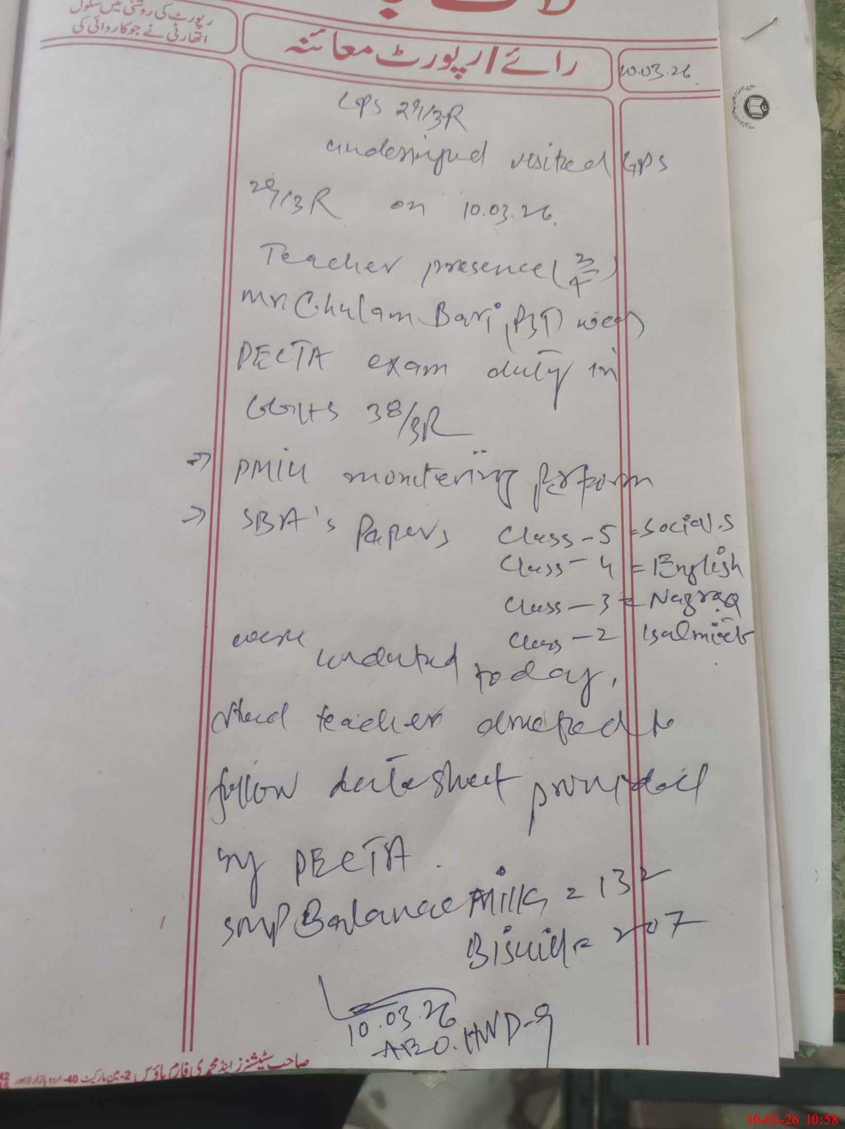 | EMIS Code: 31140256 | Name of School: GPS CHAK NO.29/3-R | |||