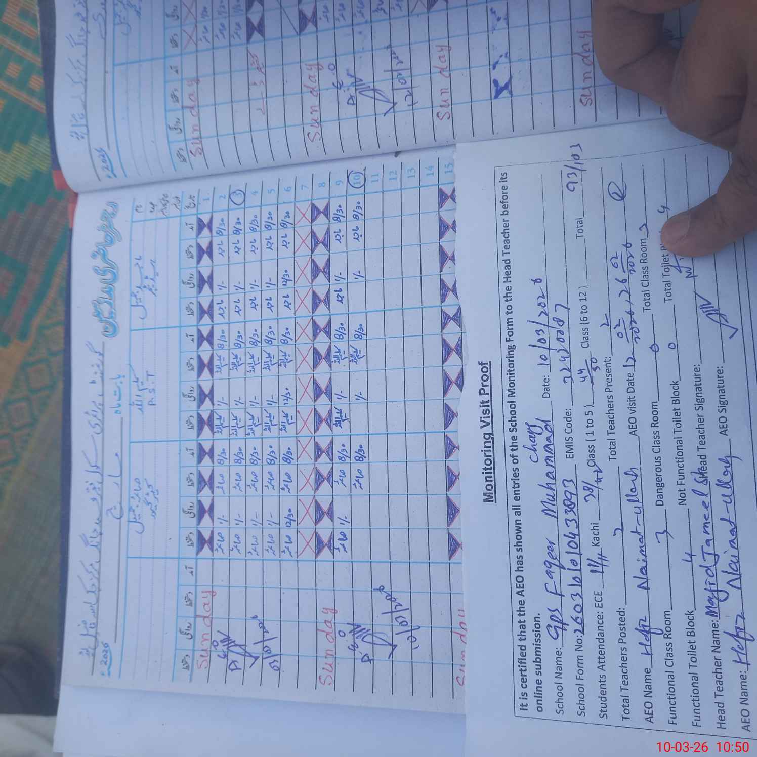 | Attendance Register | Head Teacher | MEA with School | Visit Proof |