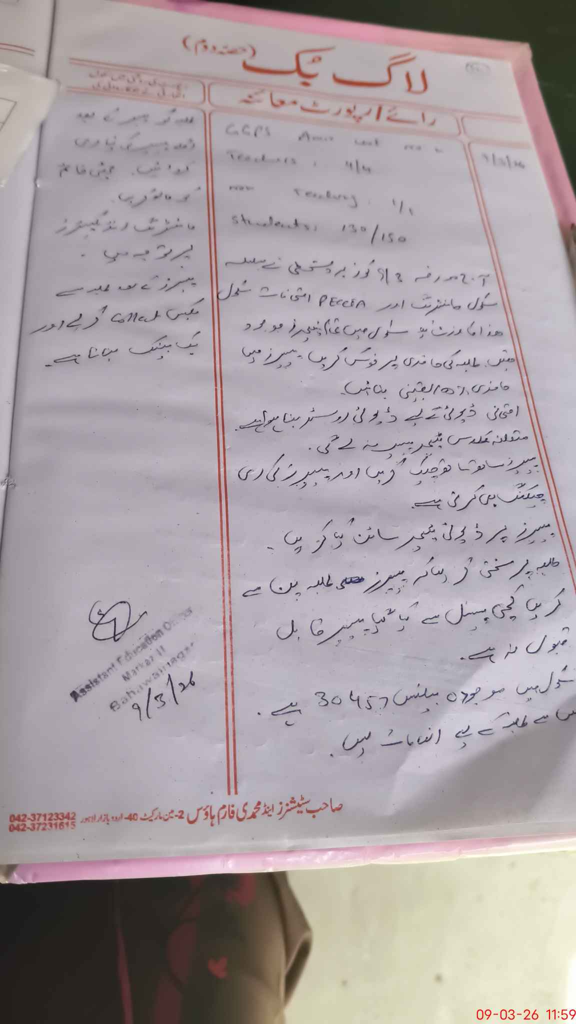 | Name: FA**** SA**** Designation: (School Headmaster's/Headmistress's) PST Phone/Cell Number: 03**** |