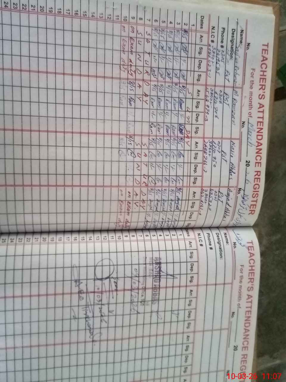 | 38**** | Sa**** UrRe**** | PST Arts | Regular | 0 | 0 | 0 | 0 | 0 | 0 | 0 | 0 | 0 | Exam Duty |