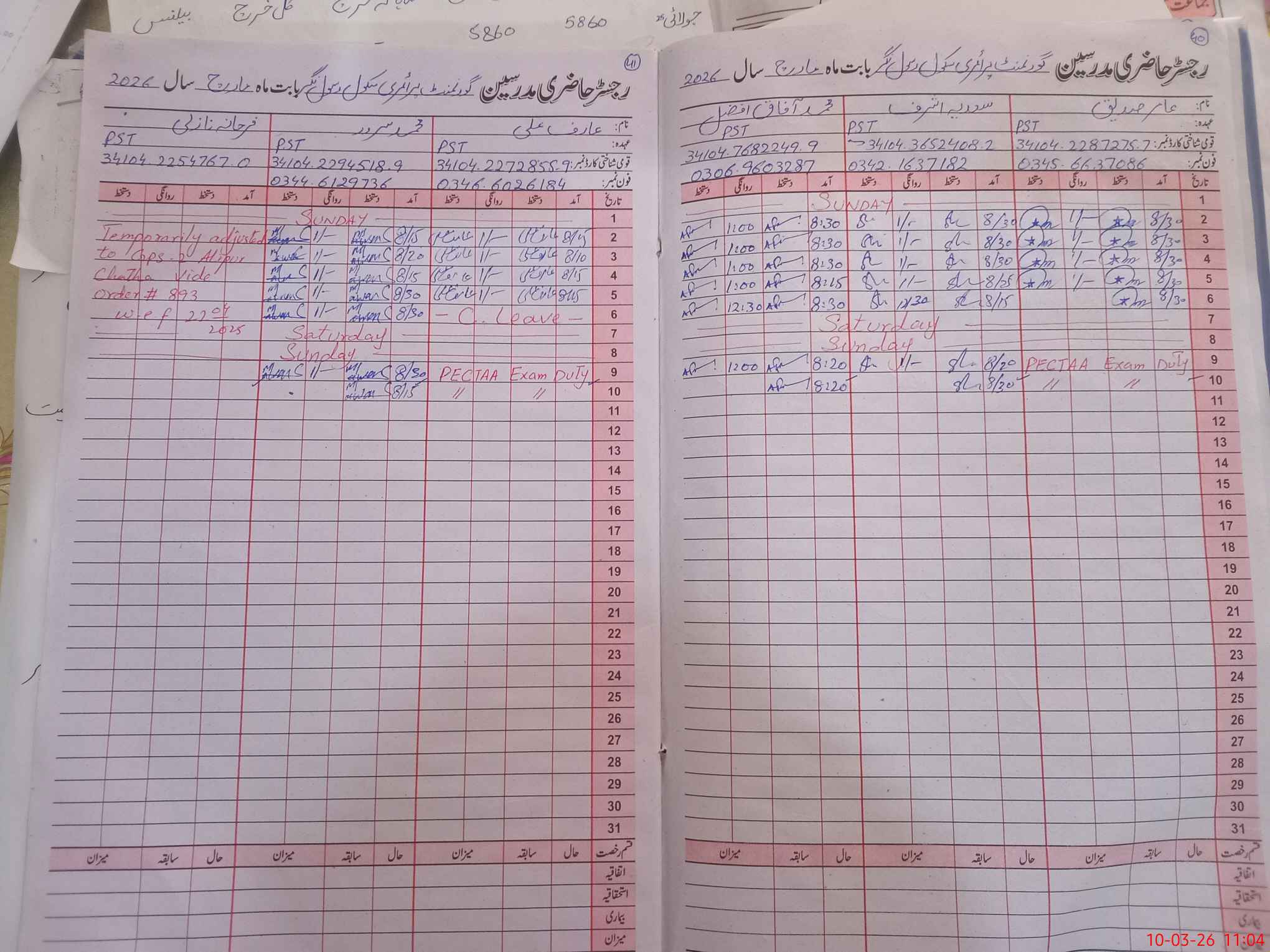 | Name: Ri**** Iq**** Designation: (School Headmaster's/Headmistress's) PST Phone/Cell Number: 03**** |