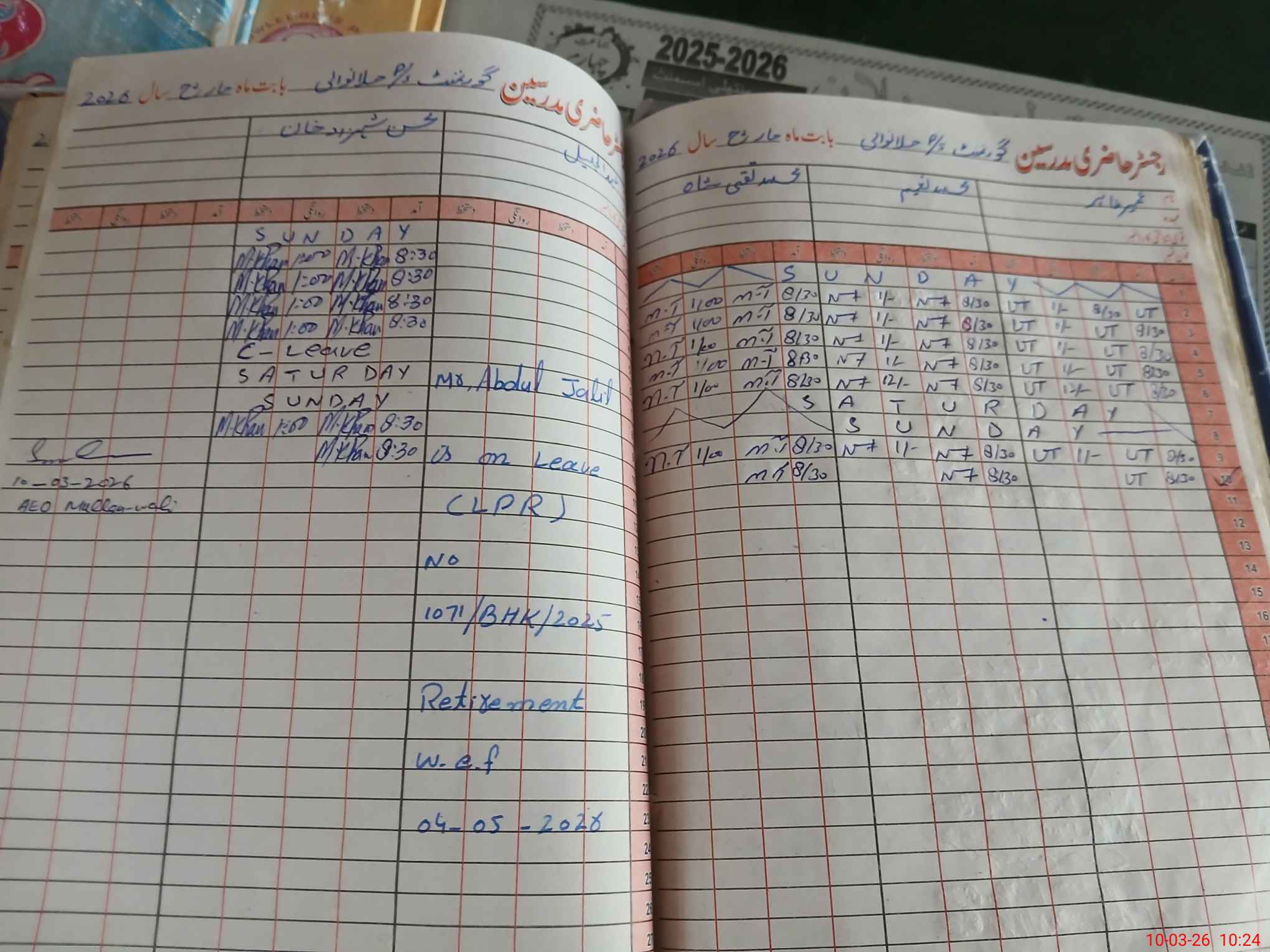 | Leave | Duty | Absent | Maternity | Medical | Ex- Pak |
