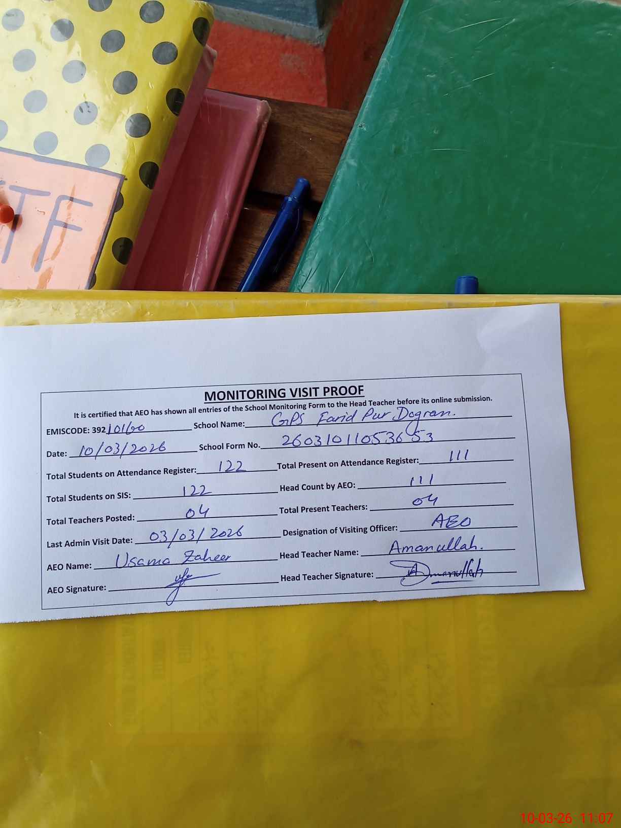| EMIS Code: 39210160 | Name of School: GPS FARID PUR DOGRAN | |||