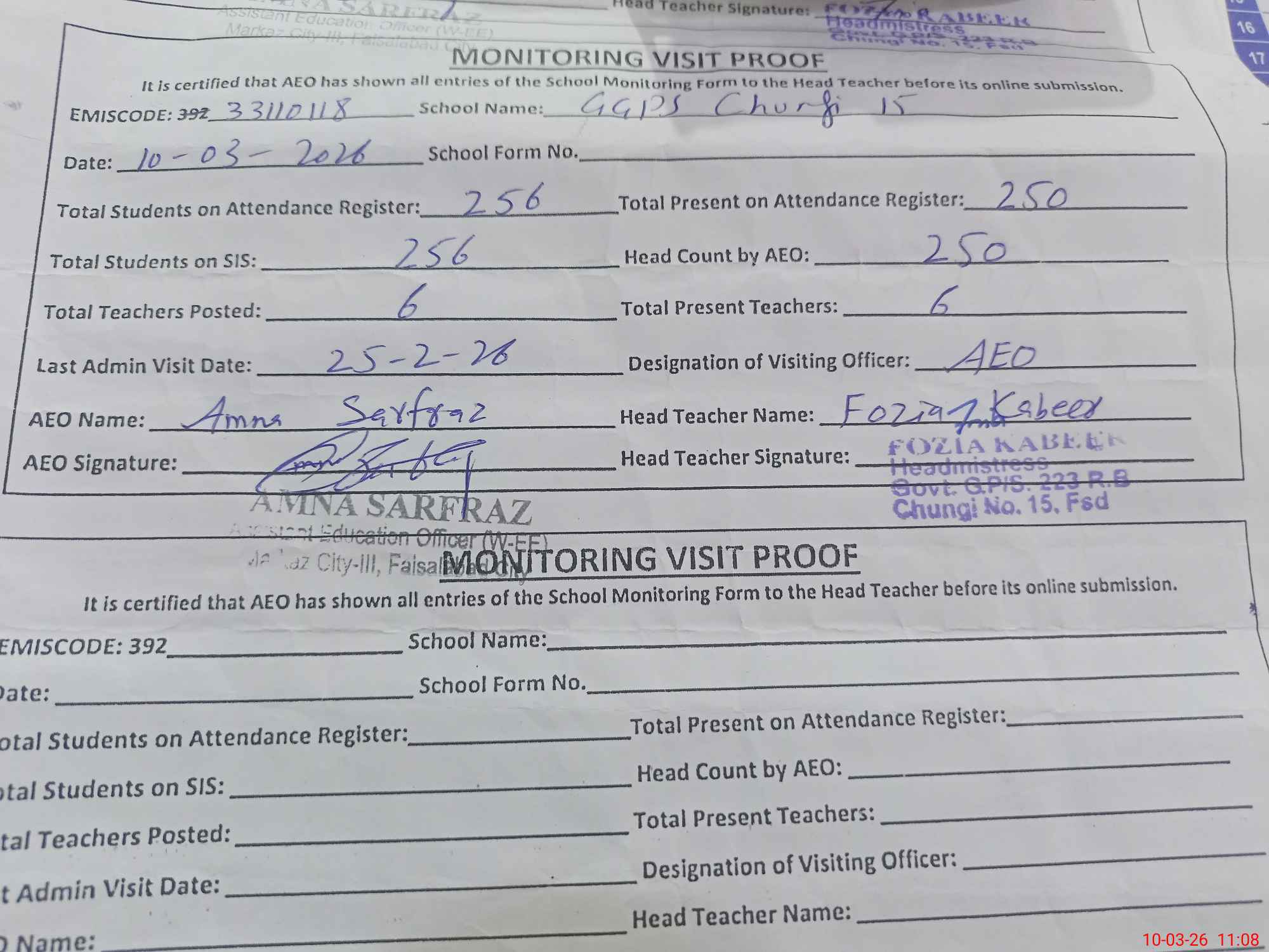 | Name: FO**** KA**** Designation: (School Headmaster's/Headmistress's) PST Phone/Cell Number: 03**** |