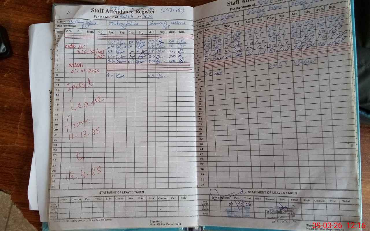 | Remarks (Use Separate Page if Required): roznamcha of students not maintained | |||||