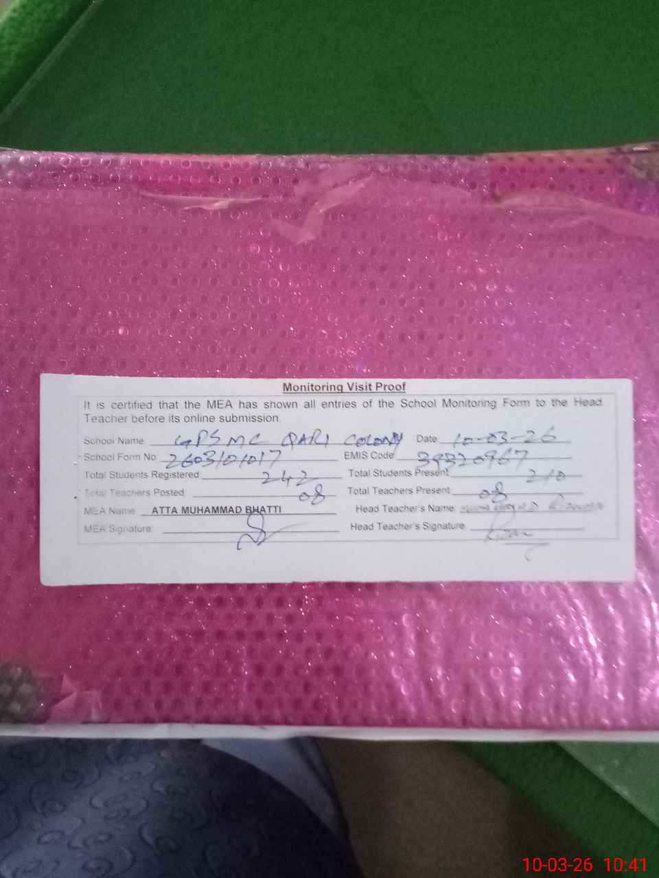 | EMIS Code: 39320967 | Name of School: GPS MC QARI COLONY | |||