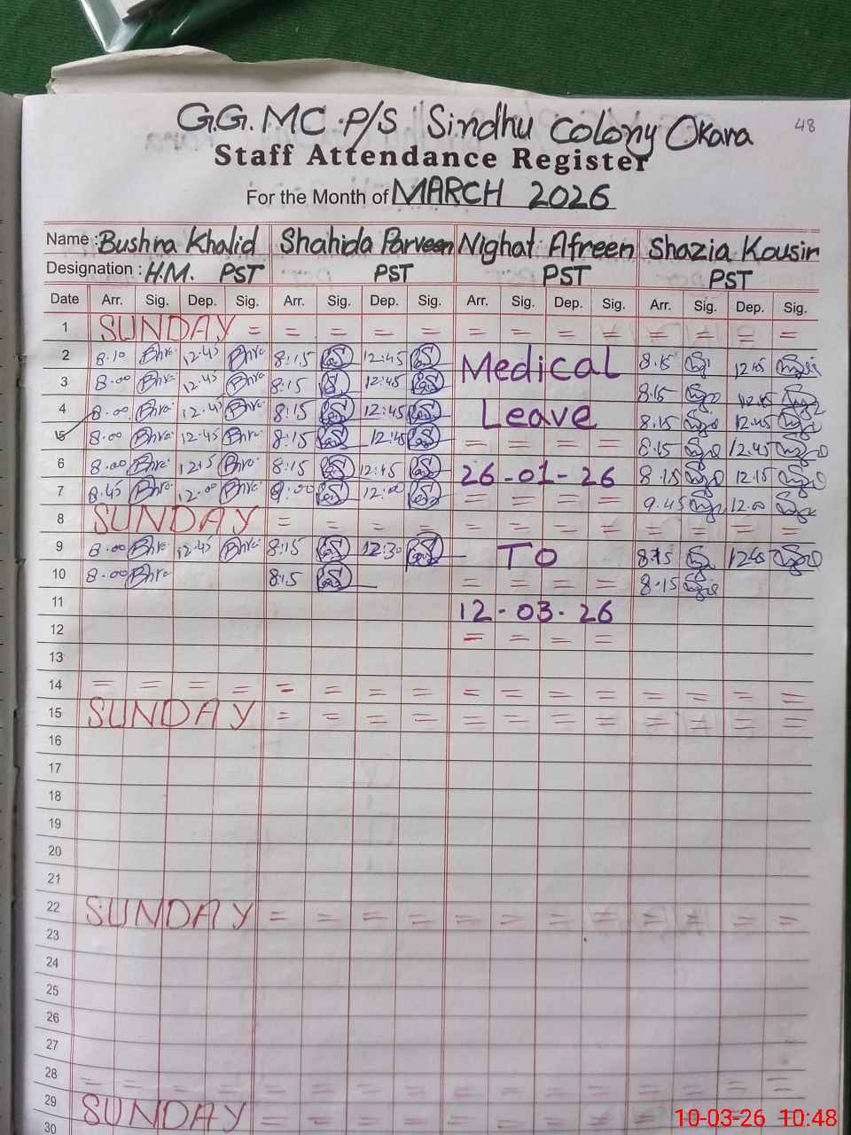 | 35**** | Ni**** Af**** | PST Arts | Regular | 28 | 0 | 0 | 0 | 28 | 0 | 0 | 0 | 0 | Medical |