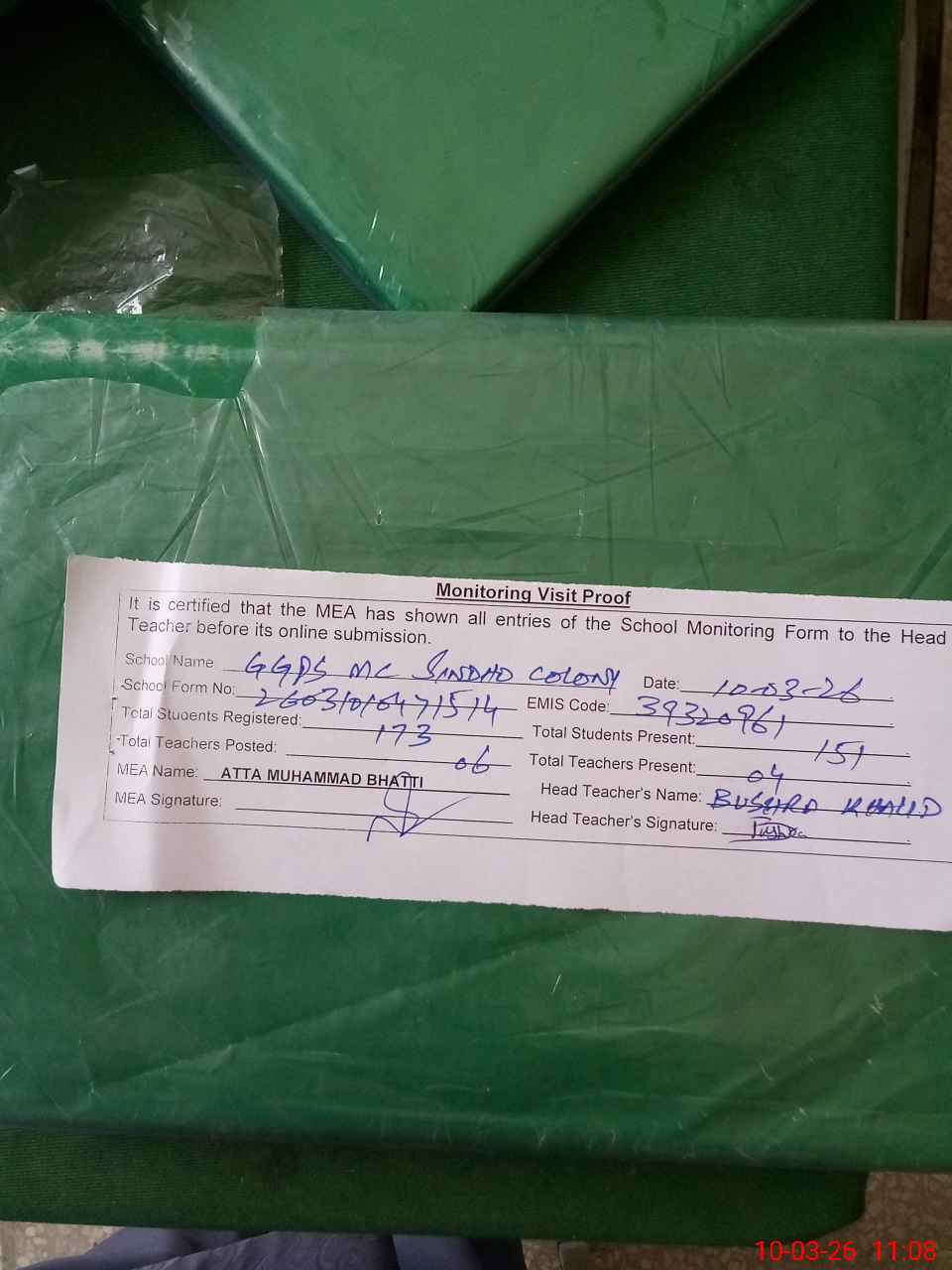 | EMIS Code: 39320961 | Name of School: GGPS MC SINDHO COLONY | |||