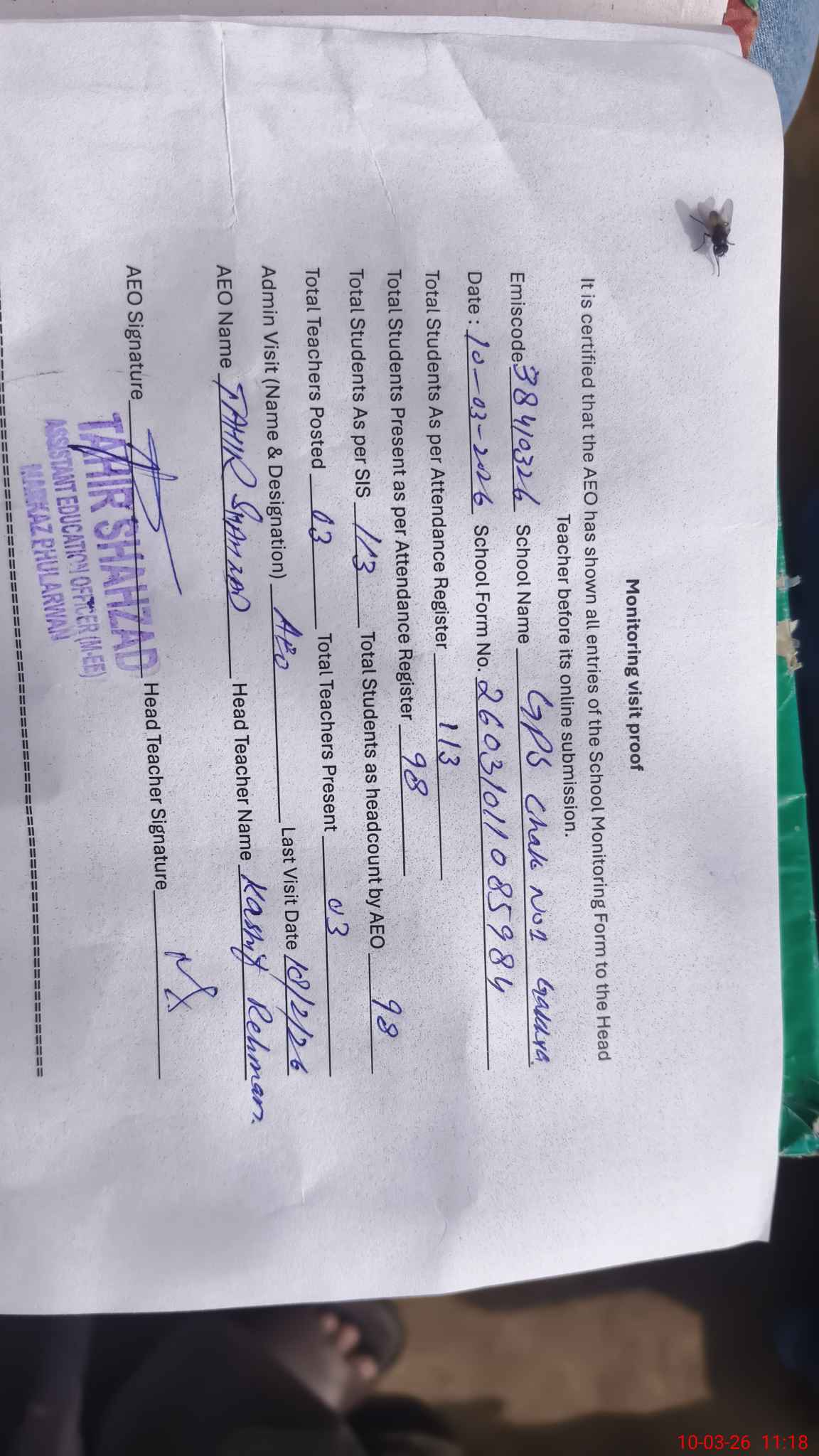 | EMIS Code: 38410326 | Name of School: GPS CHAK NO.1 NB GAKHRA | |||