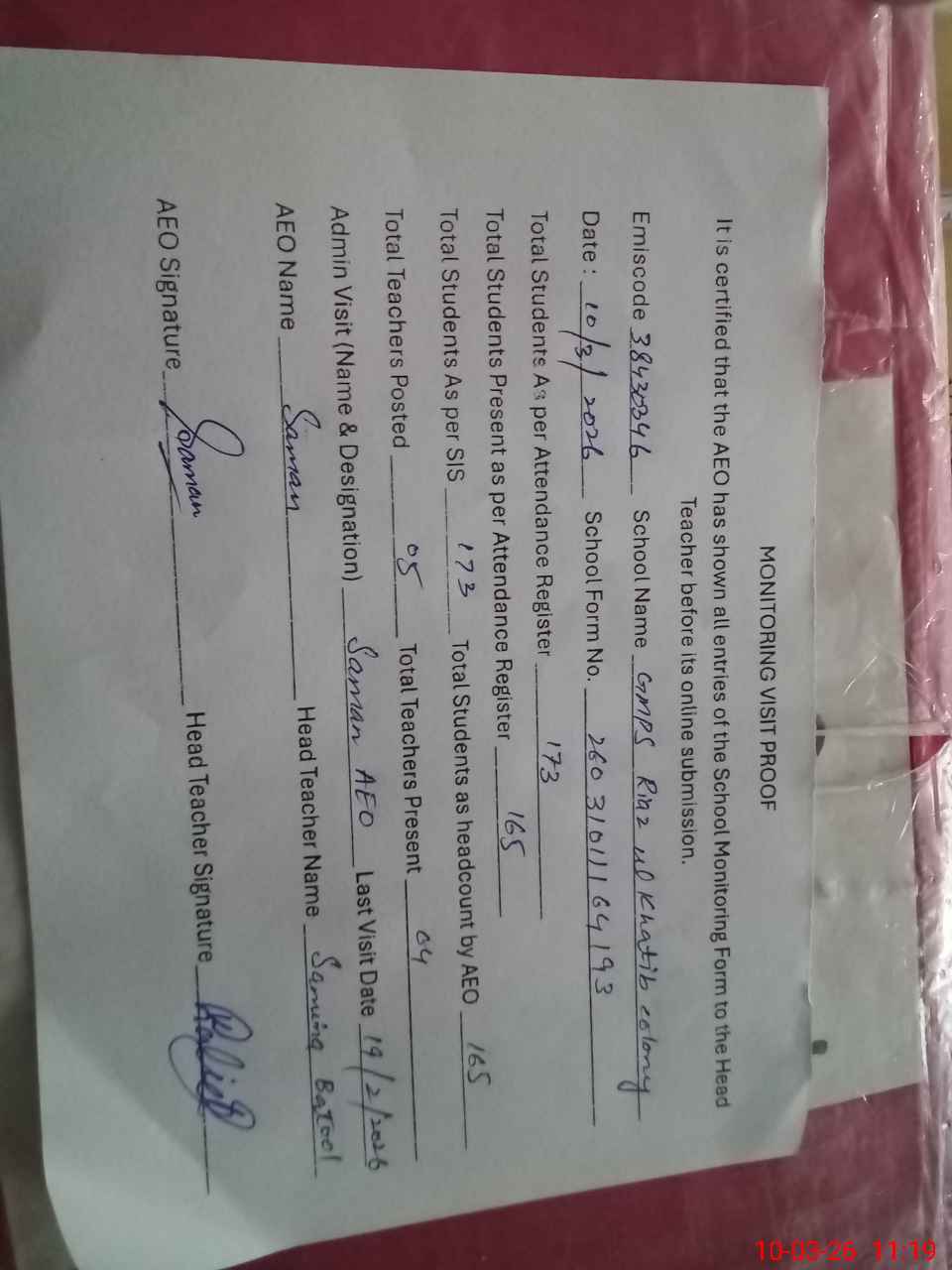 | EMIS Code: 38430346 | Name of School: GMPS RIAZ UL KHATEEB COLONY SHAHPUR SADAR | |||