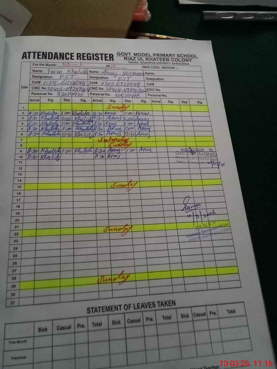 | Name: SA**** BA**** Designation: (School Headmaster's/Headmistress's) PST Phone/Cell Number: 03**** |