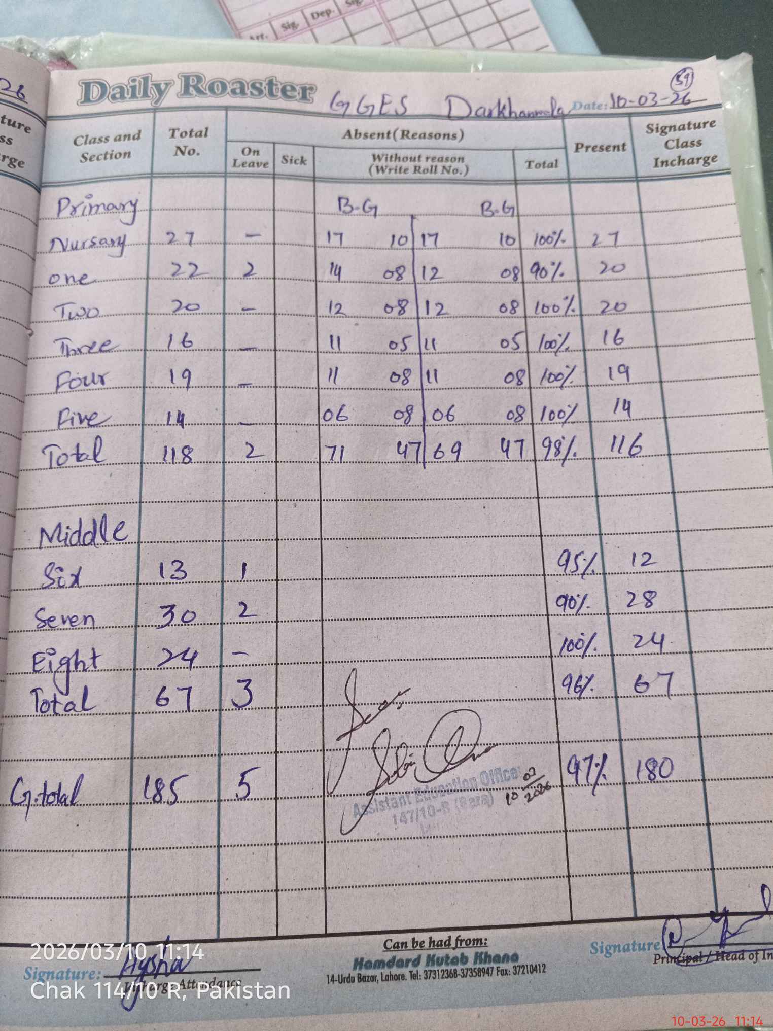 | District: KHANEWAL | Tehsil: JAHANIAN | Markaz: 147/10-R(BARA) - FEMALE | Level: Middle | |