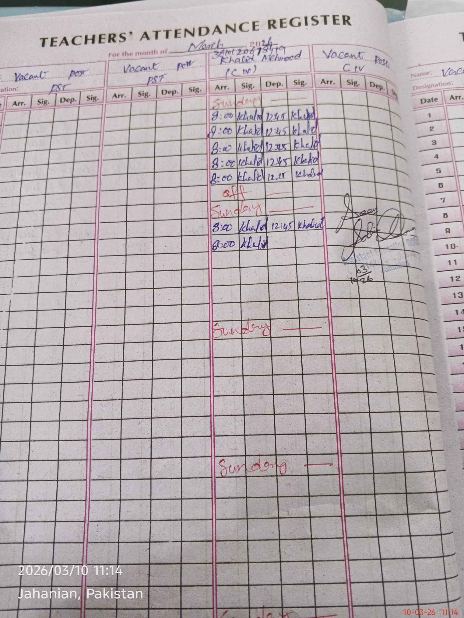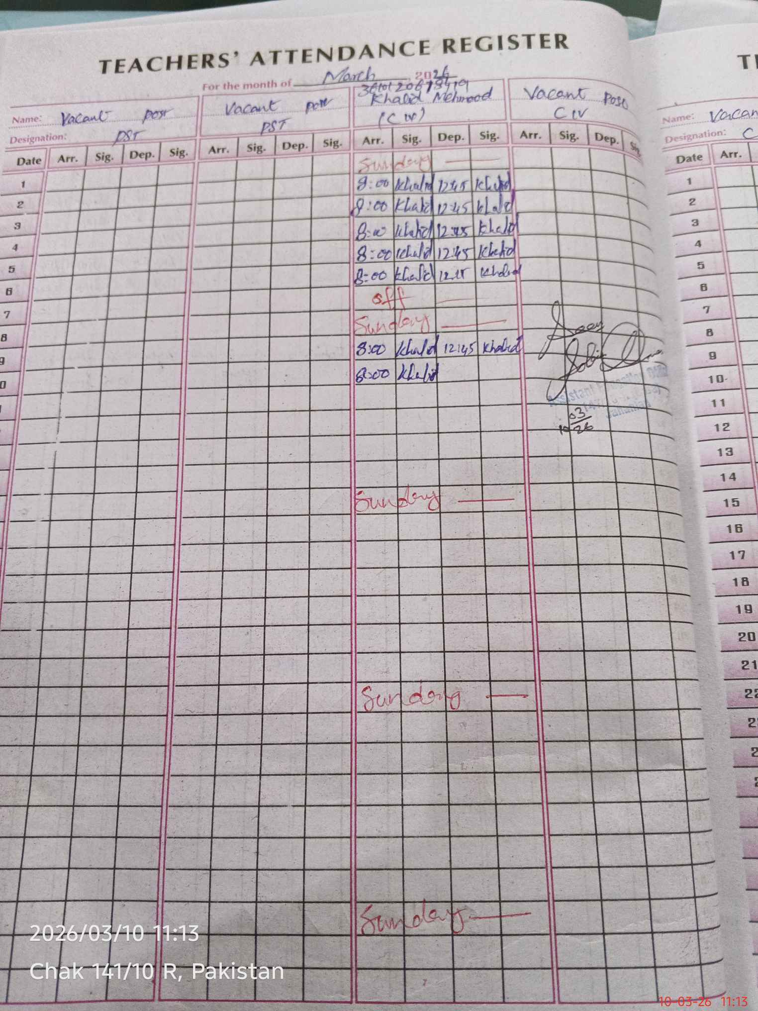 | Name: Za**** Ko**** Designation: (School Headmaster's/Headmistress's) SST (BIO CHEM ) Phone/Cell Number: 03**** |