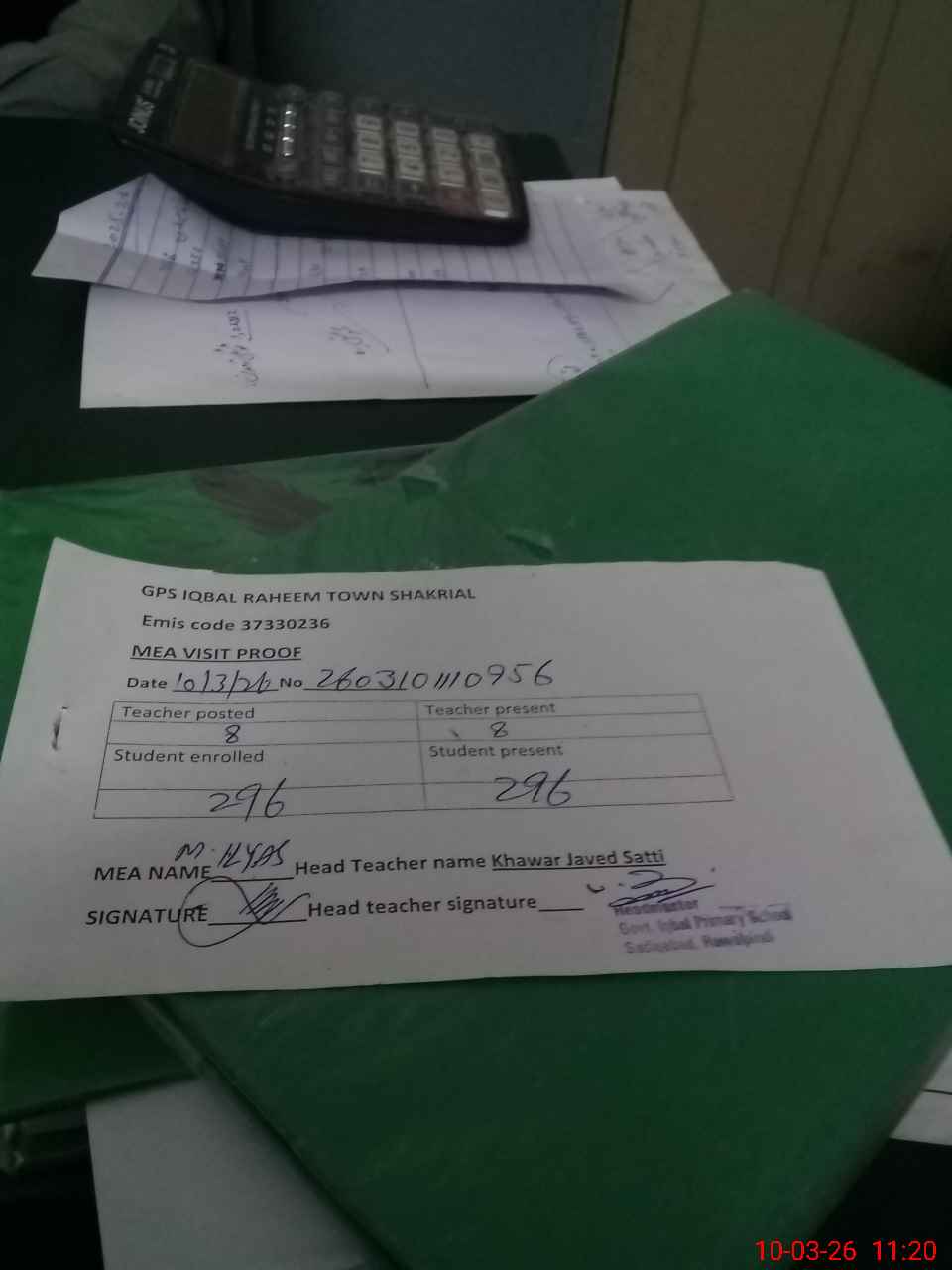 | EMIS Code: 37330236 | Name of School: GPS IQBAL RAHIM TOWN | |||