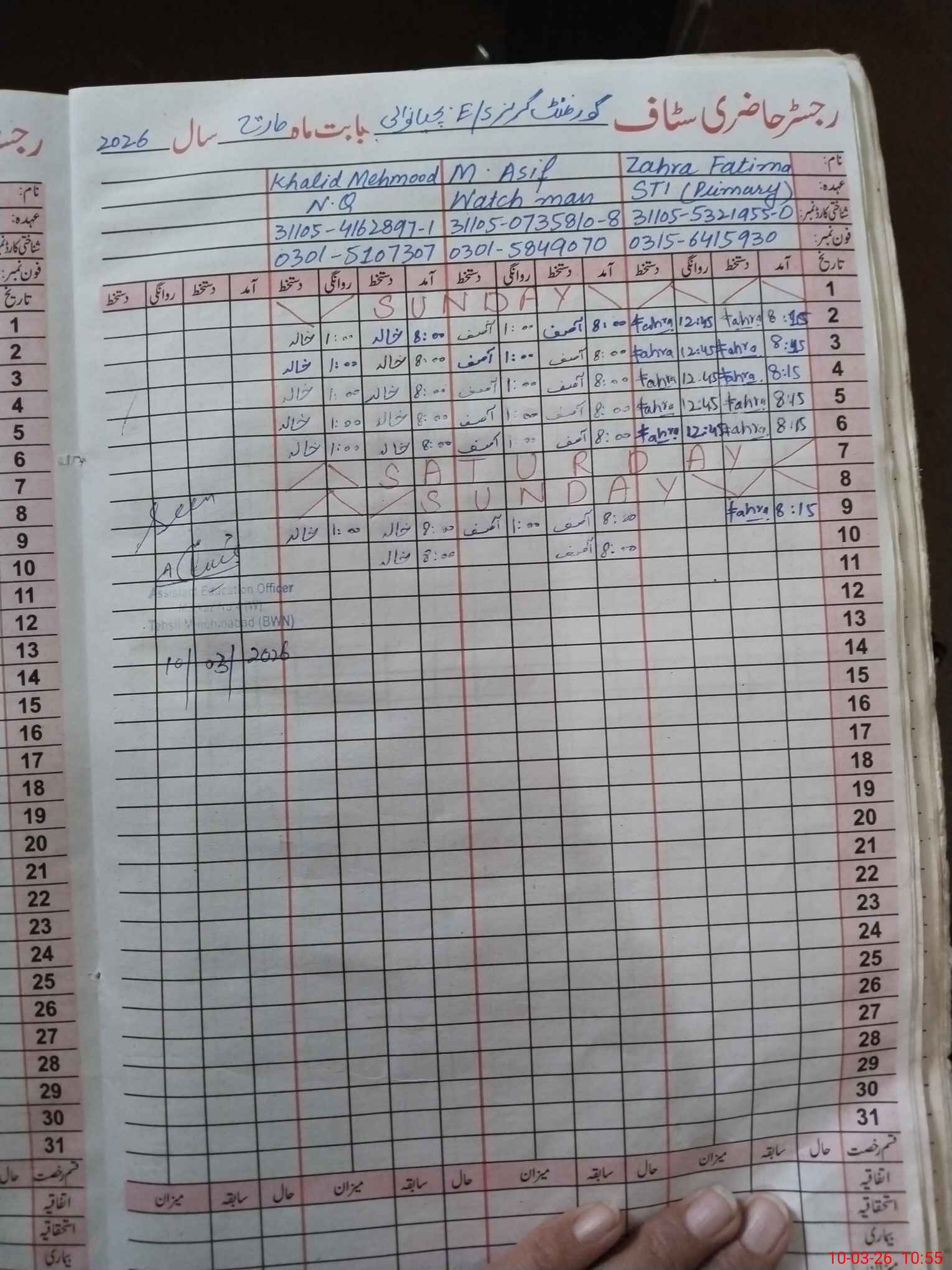 | CNIC | Full Name | Designation | R/C | Absence During Last Calender Month |