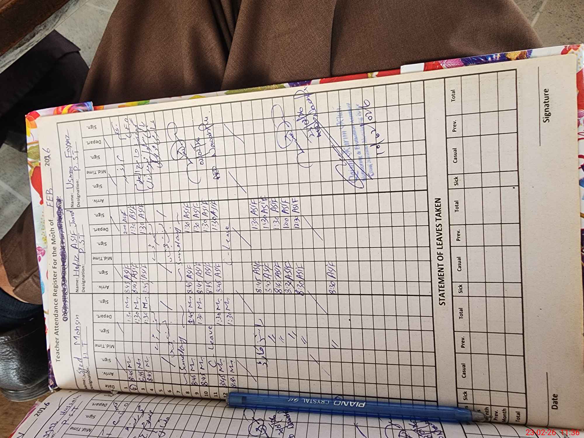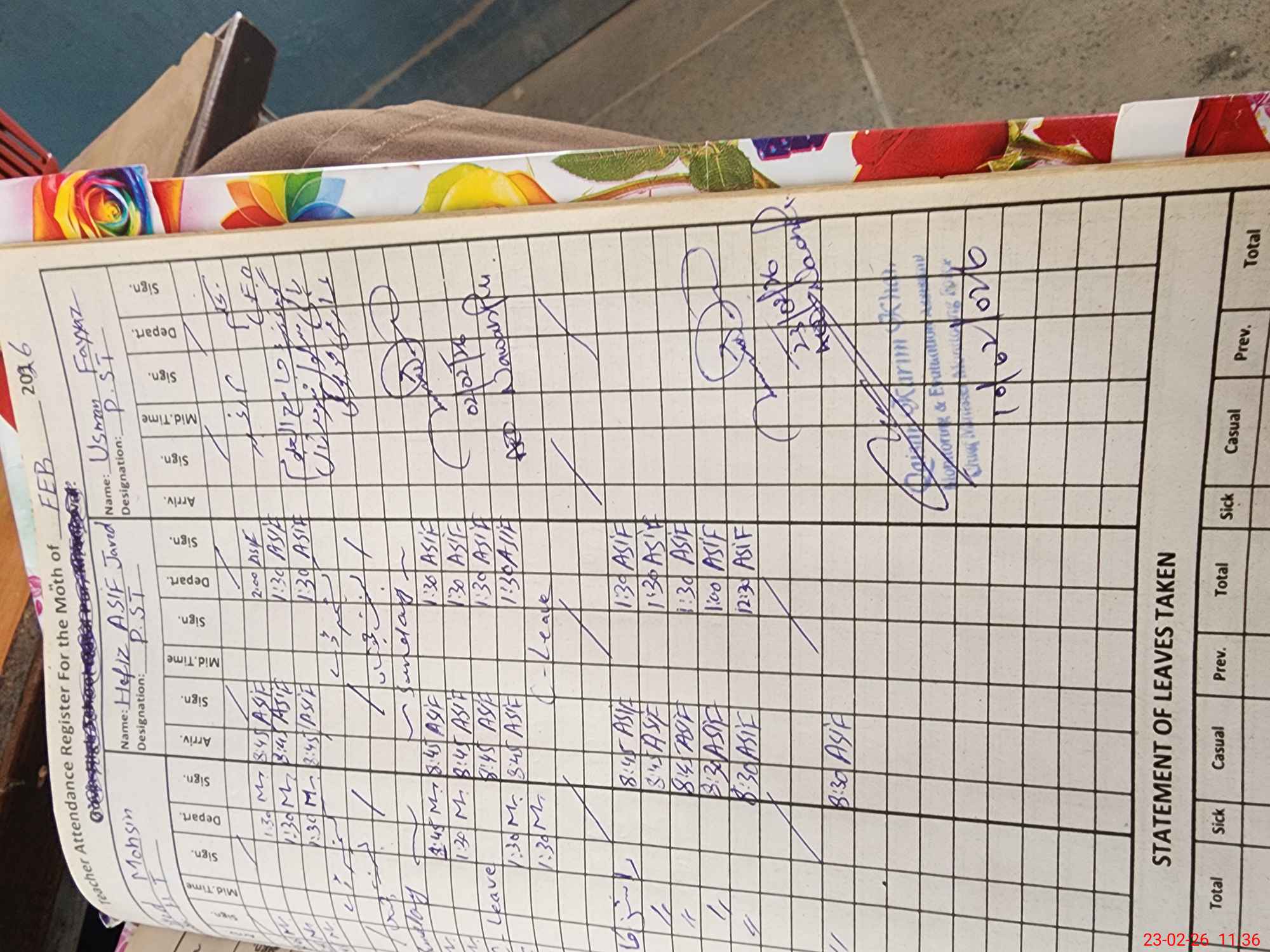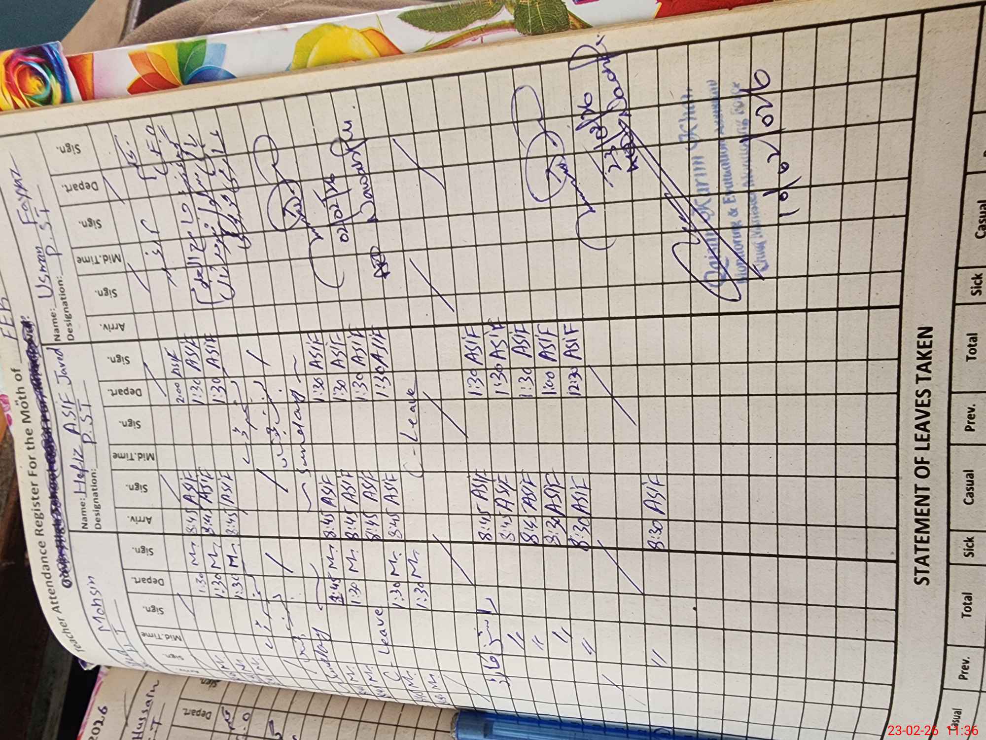 | CNIC | Full Name | Designation | R/C | Absence During Last Calender Month |