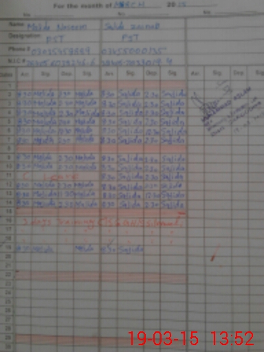 | CNIC | Full Name | Designation | R/C | Absence During Last Calender Month |