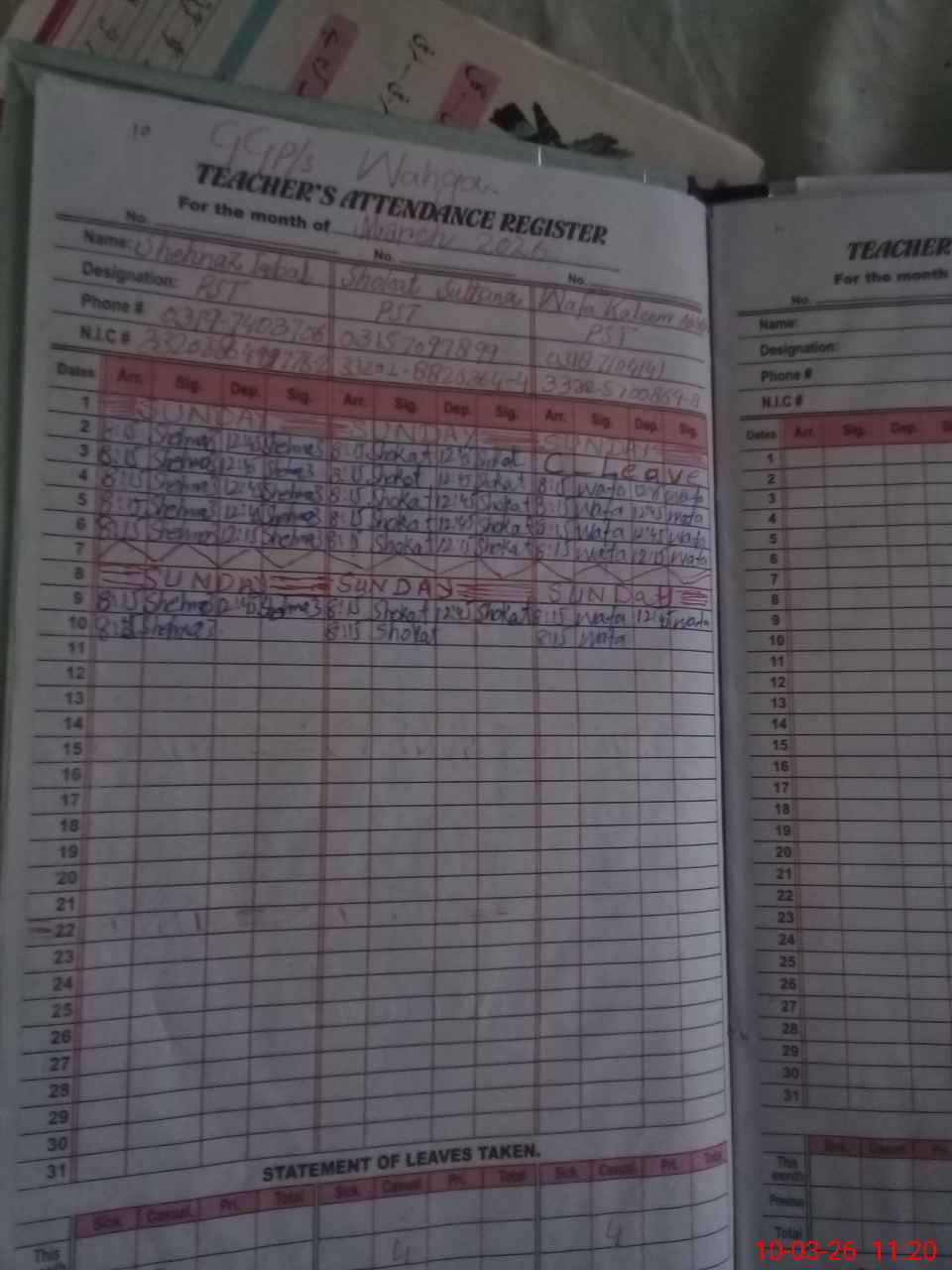 | Name: Sh**** Iq**** Designation: (School Headmaster's/Headmistress's) PST Phone/Cell Number: 03**** |