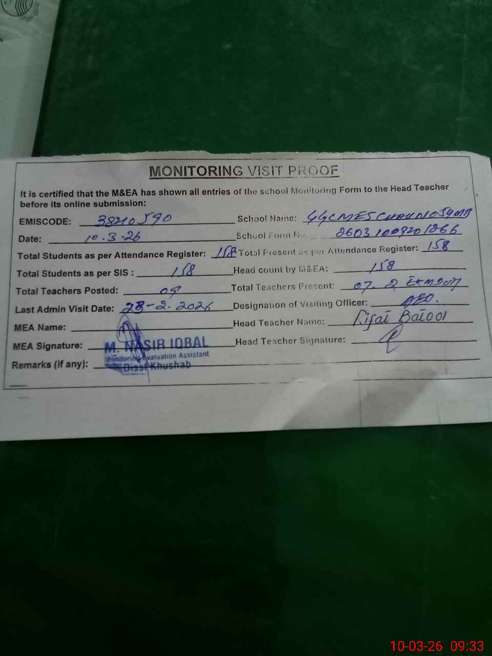 | EMIS Code: 38210590 | Name of School: GGCMES CHAK NO. 54/MB | |||