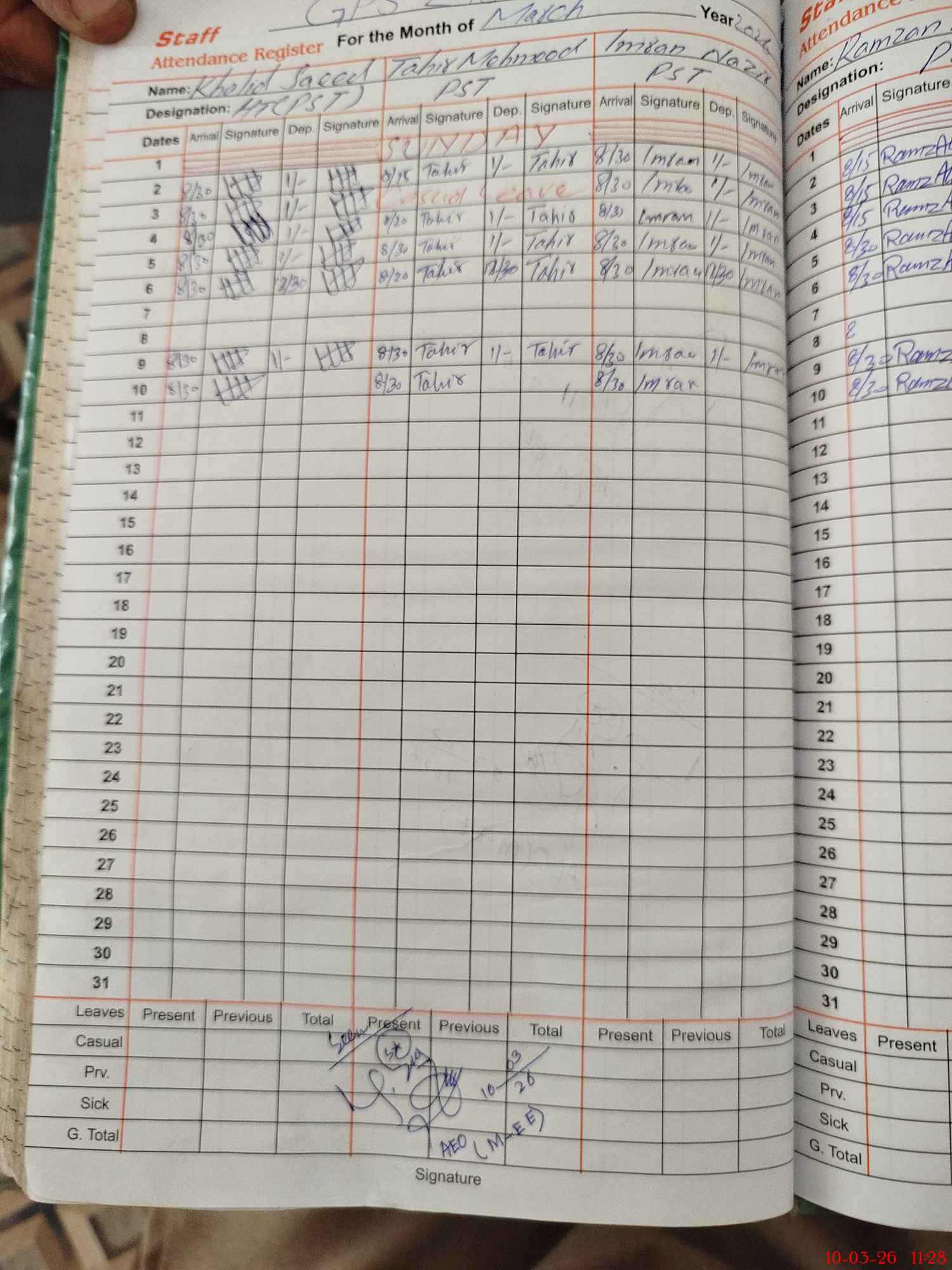 | Name: KH**** SA**** Designation: (School Headmaster's/Headmistress's) PST Phone/Cell Number: 03**** |