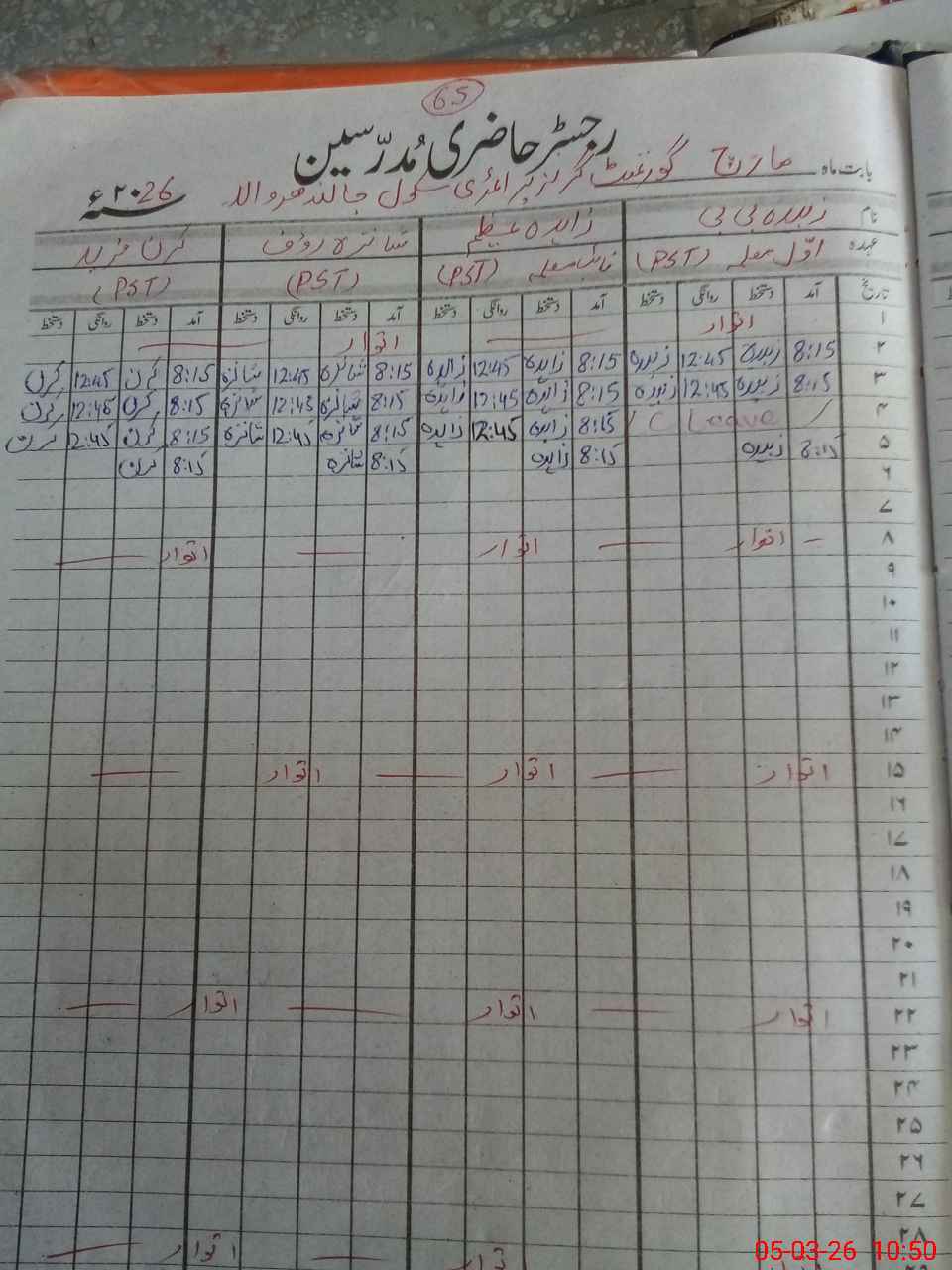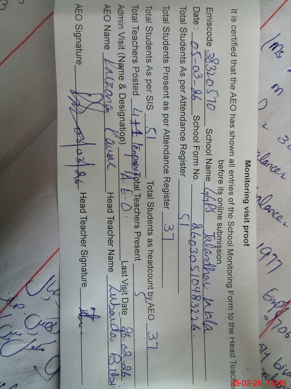 | Name: Zu**** Bi**** Designation: (School Headmaster's/Headmistress's) PST Phone/Cell Number: 03**** |