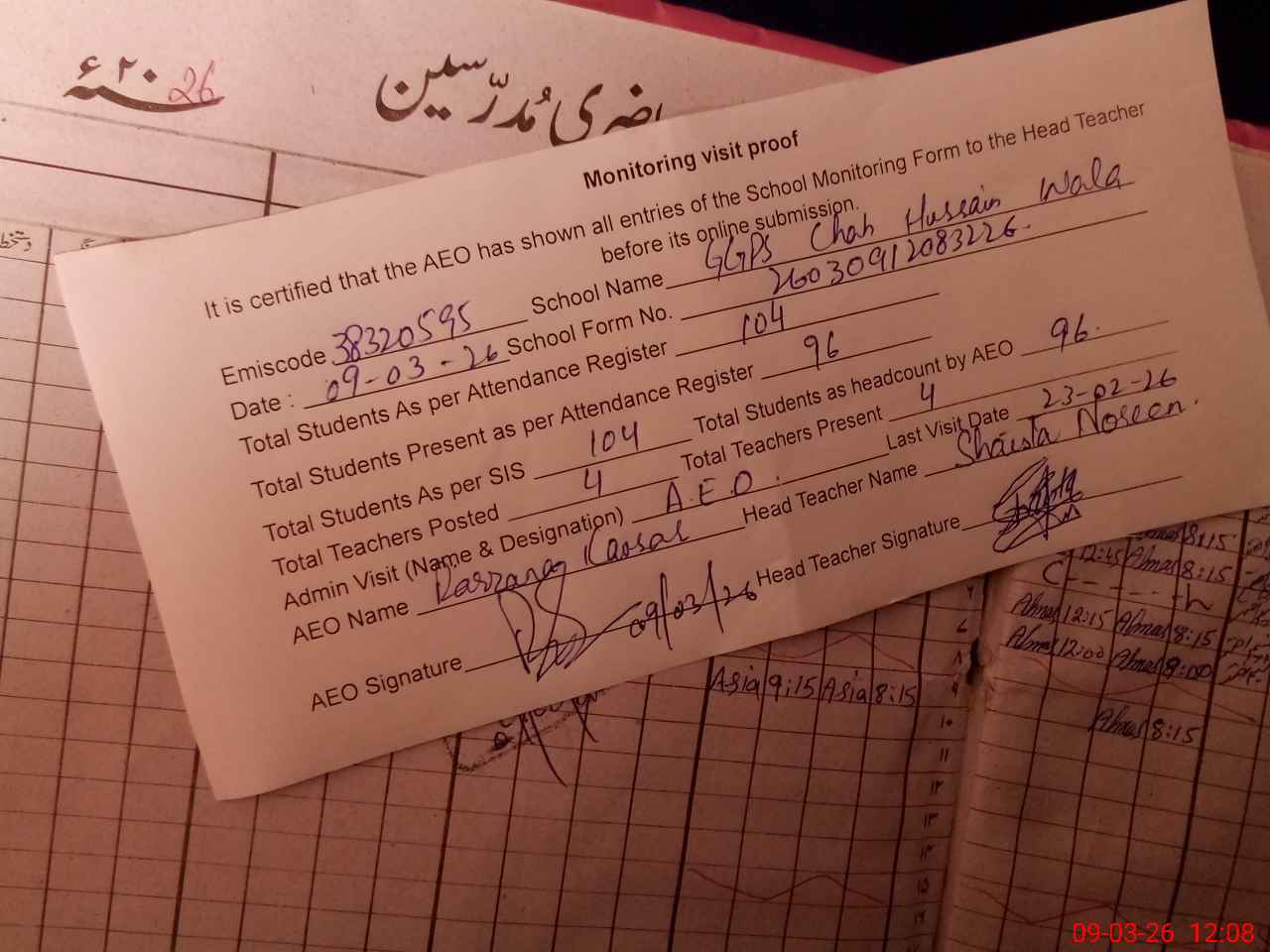 | EMIS Code: 38320595 | Name of School: GGPS CHAH HUSSAIN WALA | |||