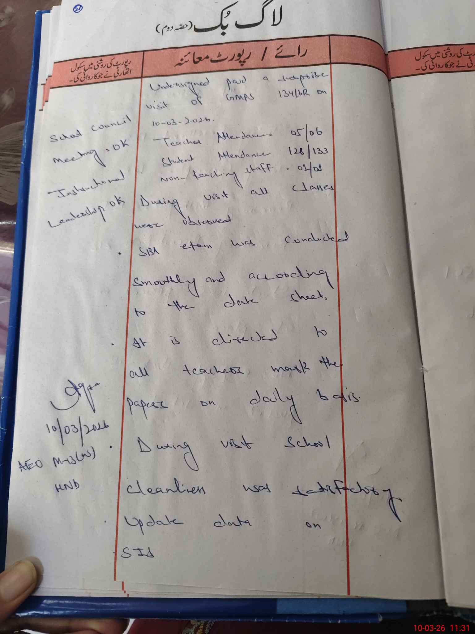 | Attendance Register | Head Teacher | MEA with School | Visit Proof |