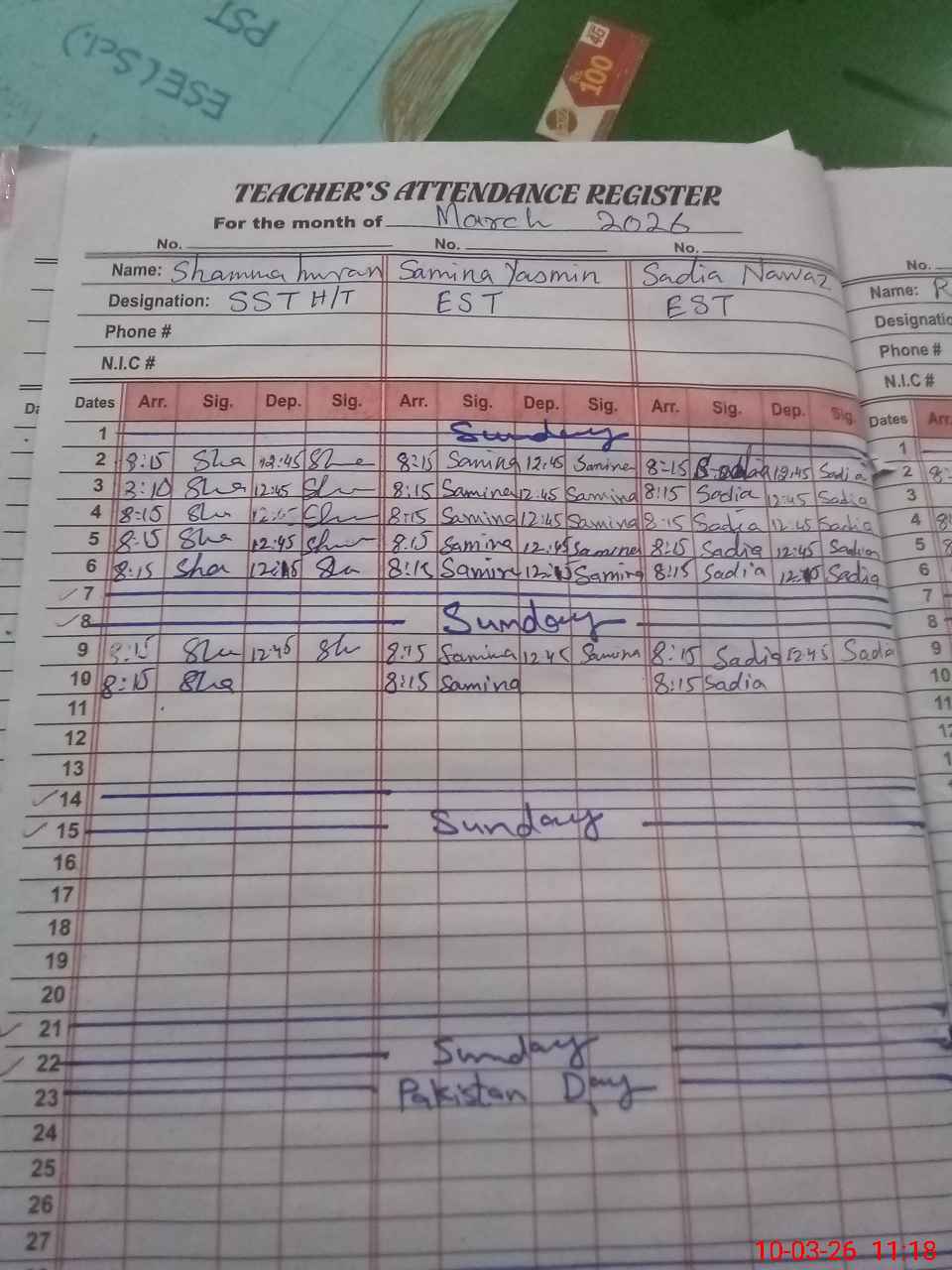 | 34**** | Ka**** Ak**** | PST Arts | Regular | 13 | 0 | 0 | 0 | 0 | 0 | 0 | 11 | 2 | Exam Duty |